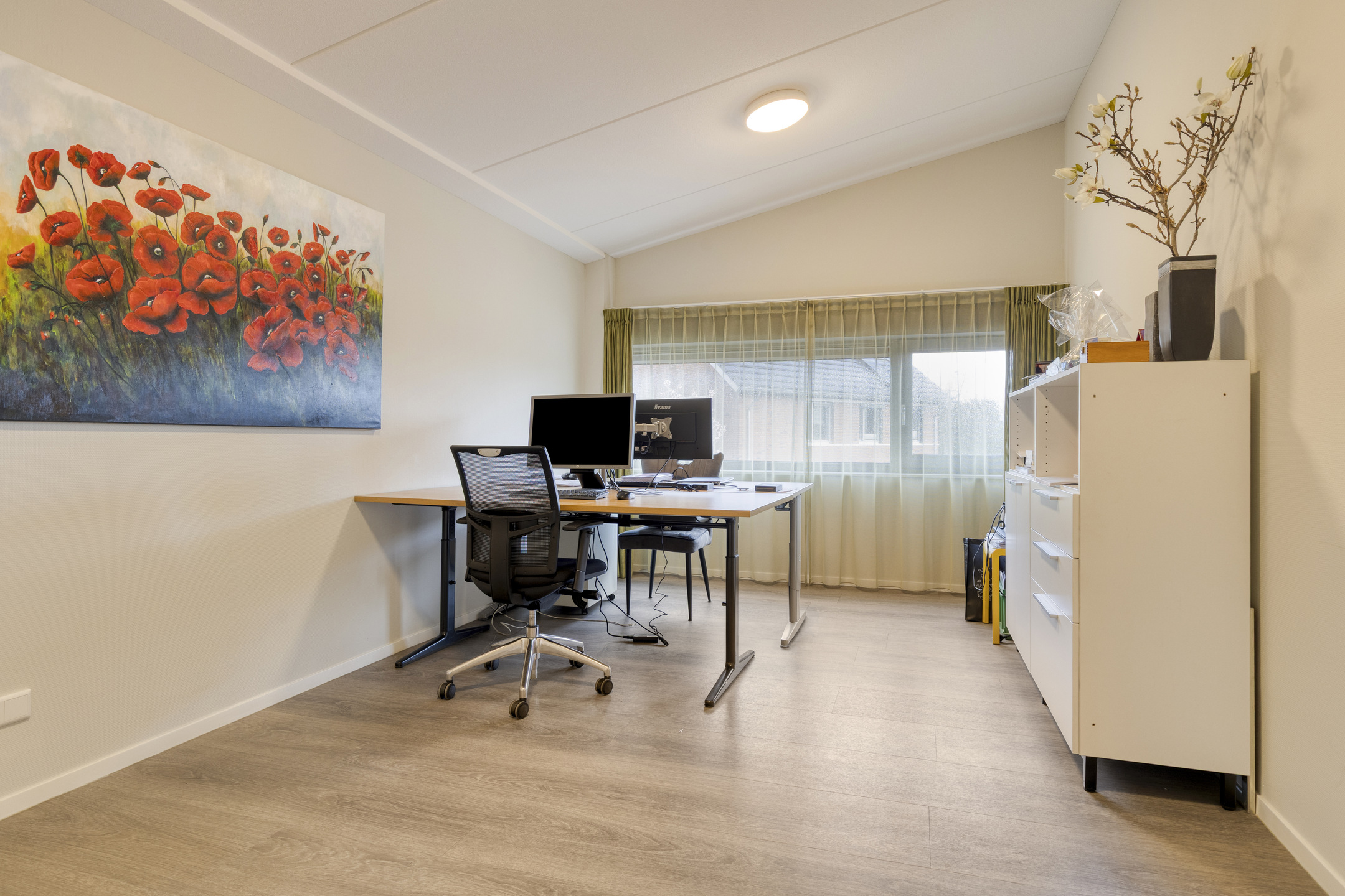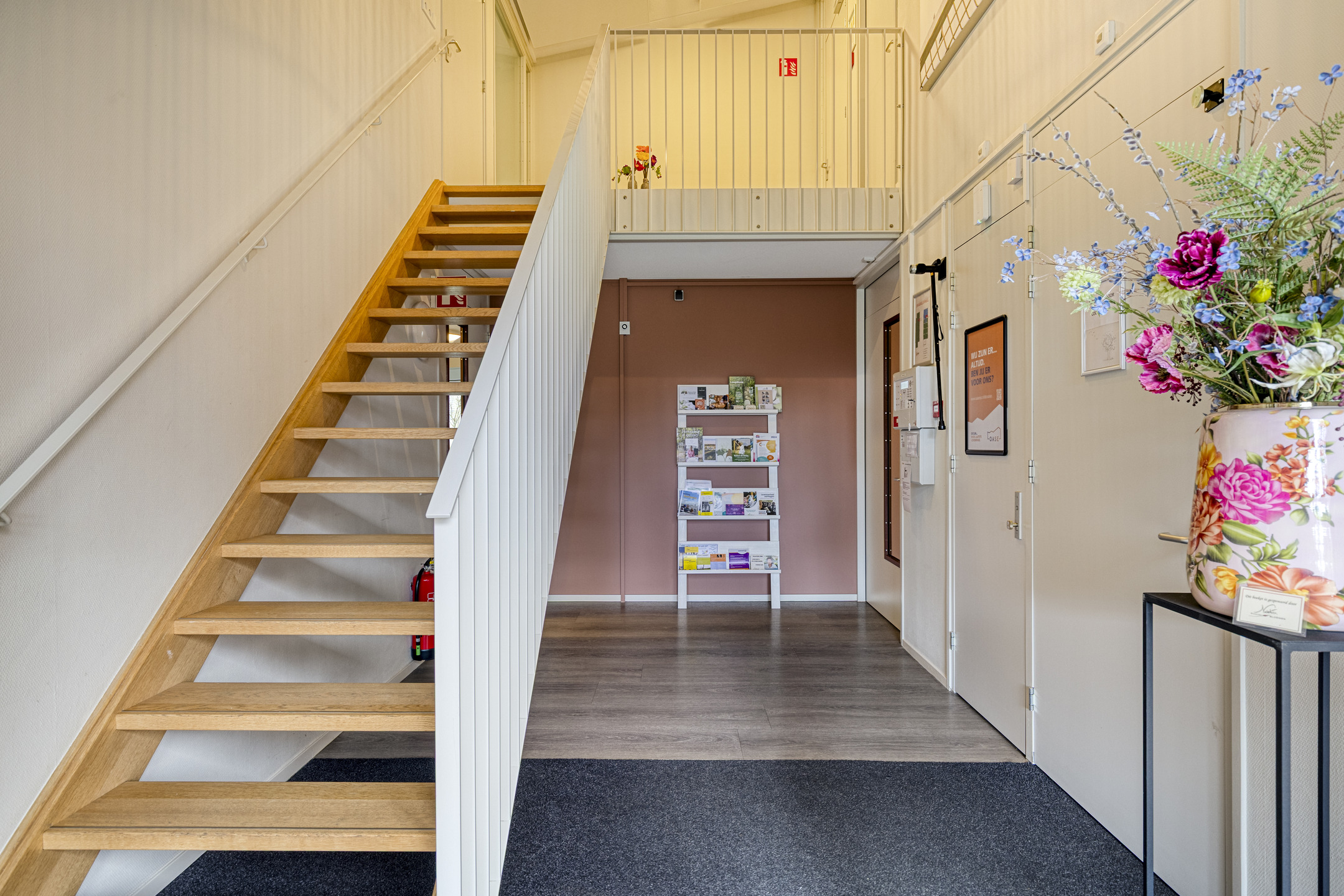 Onderhavig object is gebouwd in 2017 en recentelijk verbouwd, waardoor het geheel een moderne en frisse uitstraling heeft gekregen. De begane grond van het pand is in gebruik bij Hospice Oase. De verdieping is thans voor (onder)verhuur beschikbaar en is uitsluitend bereikbaar via een trap. Via een gezamenlijke, representatieve en sfeervolle entree zijn de beschikbare ruimtes op de verdieping te bereiken. Op de verdieping, met een totale oppervlakte van circa 103 m², bevindt zich een centrale entree met een kleine zitgelegenheid, die toegang biedt tot een afgesloten gedeelte met twee kantoorruimtes.
