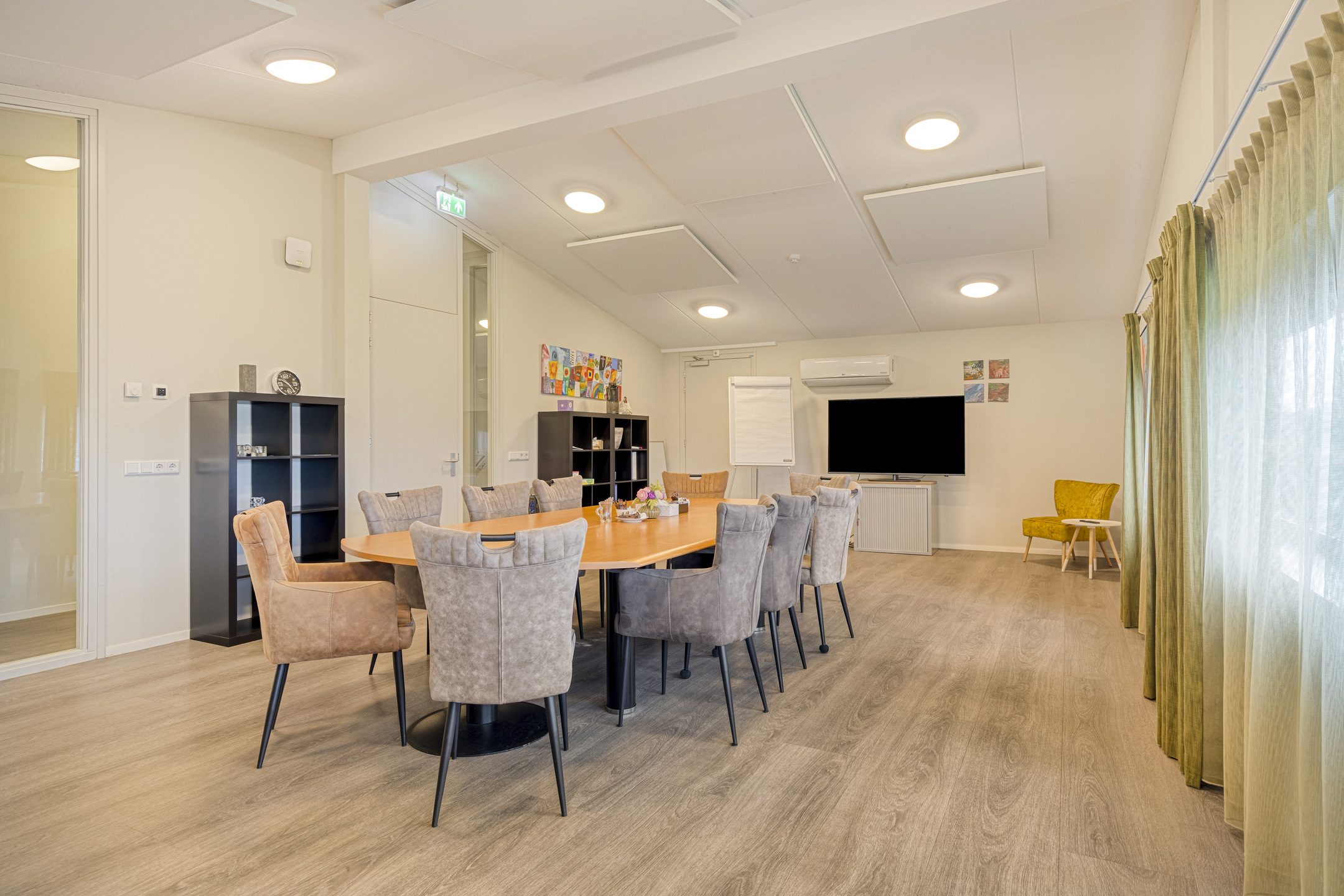 - ruime spreek-/vergader-/kantoorruimte van circa 52 m²;