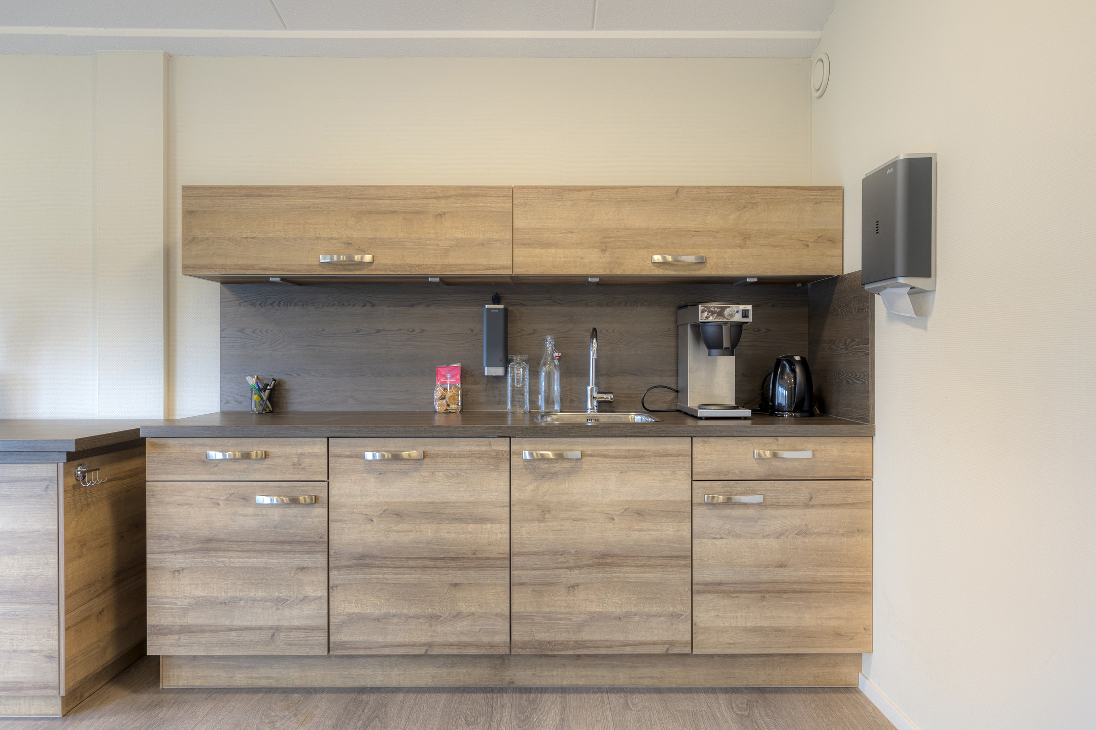 - pantry, voorzien van een wasbak, koelkast en opbergruimte;