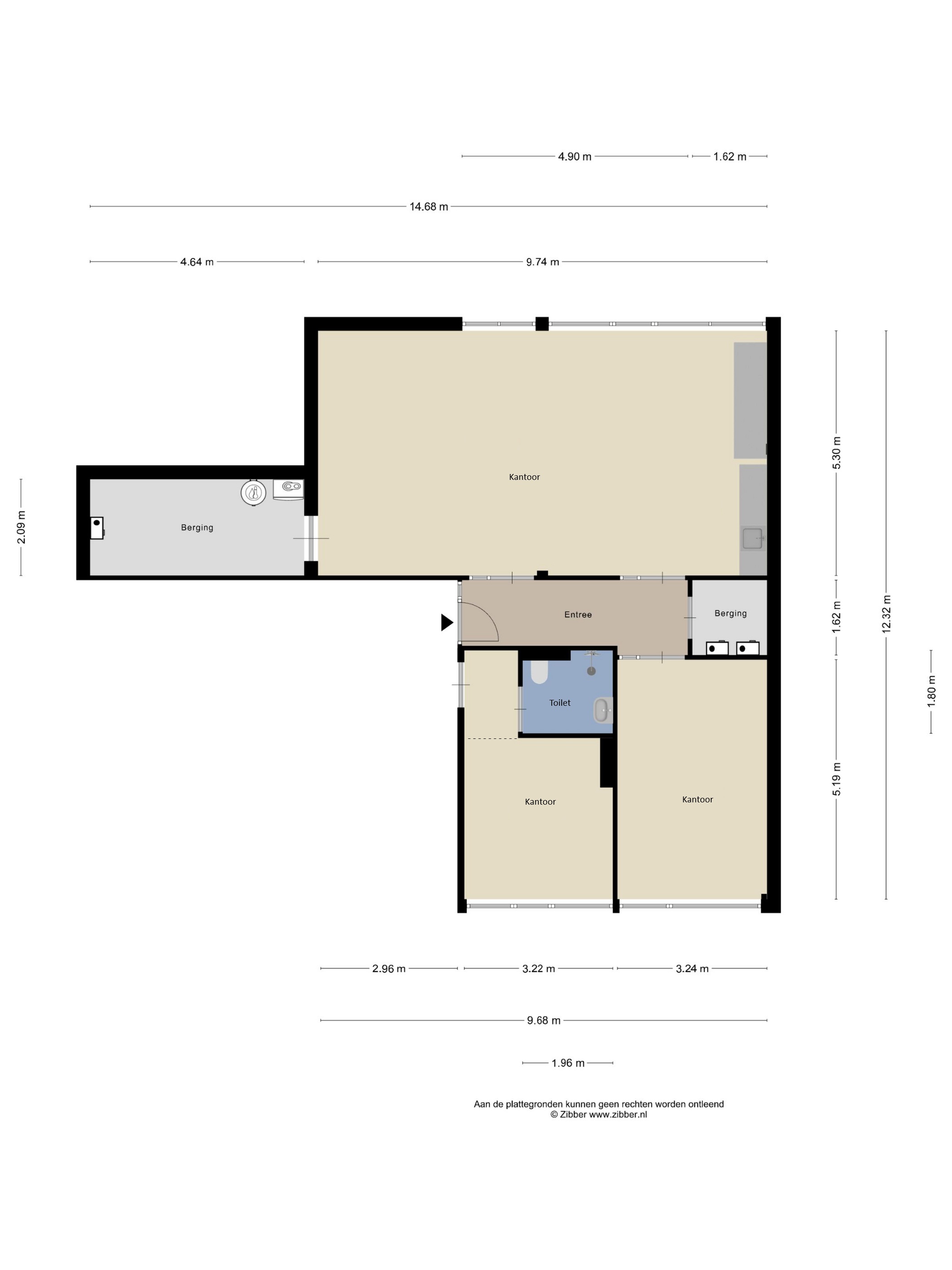 - kantoorruimte van circa 16,8 m²;