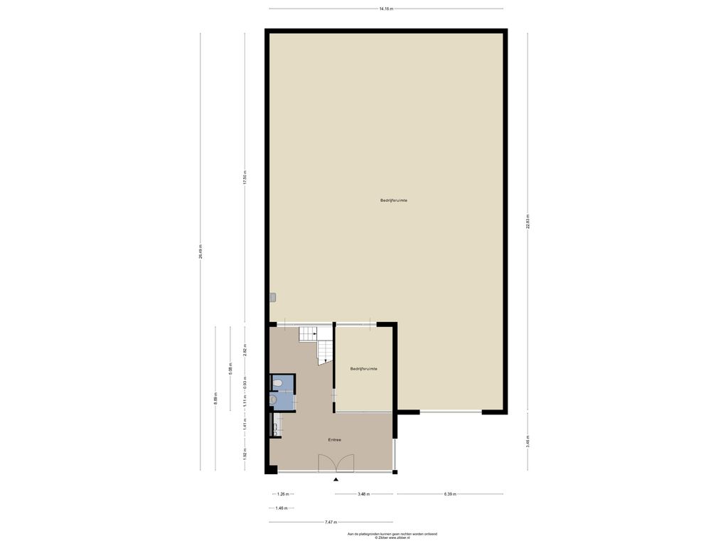 De bedrijfsruimte is voorzien van een gevlinderde betonvloer met een draagkracht van circa 1.000 kg/m², tegelwerk bij de entree, een lichtstraat ten behoeve van natuurlijke daglichttoetreding, LED-verlichtingsarmaturen, een uitstortgootsteen, gasheater en een elektrisch bedienbare overheaddeur. Tevens is de bedrijfsruimte uitgerust met LED-verlichting aan de buitenzijde van het pand. De bedrijfsruimte is volledig vrij overspannen en beschikt over een vrije hoogte van circa 7,8 meter.