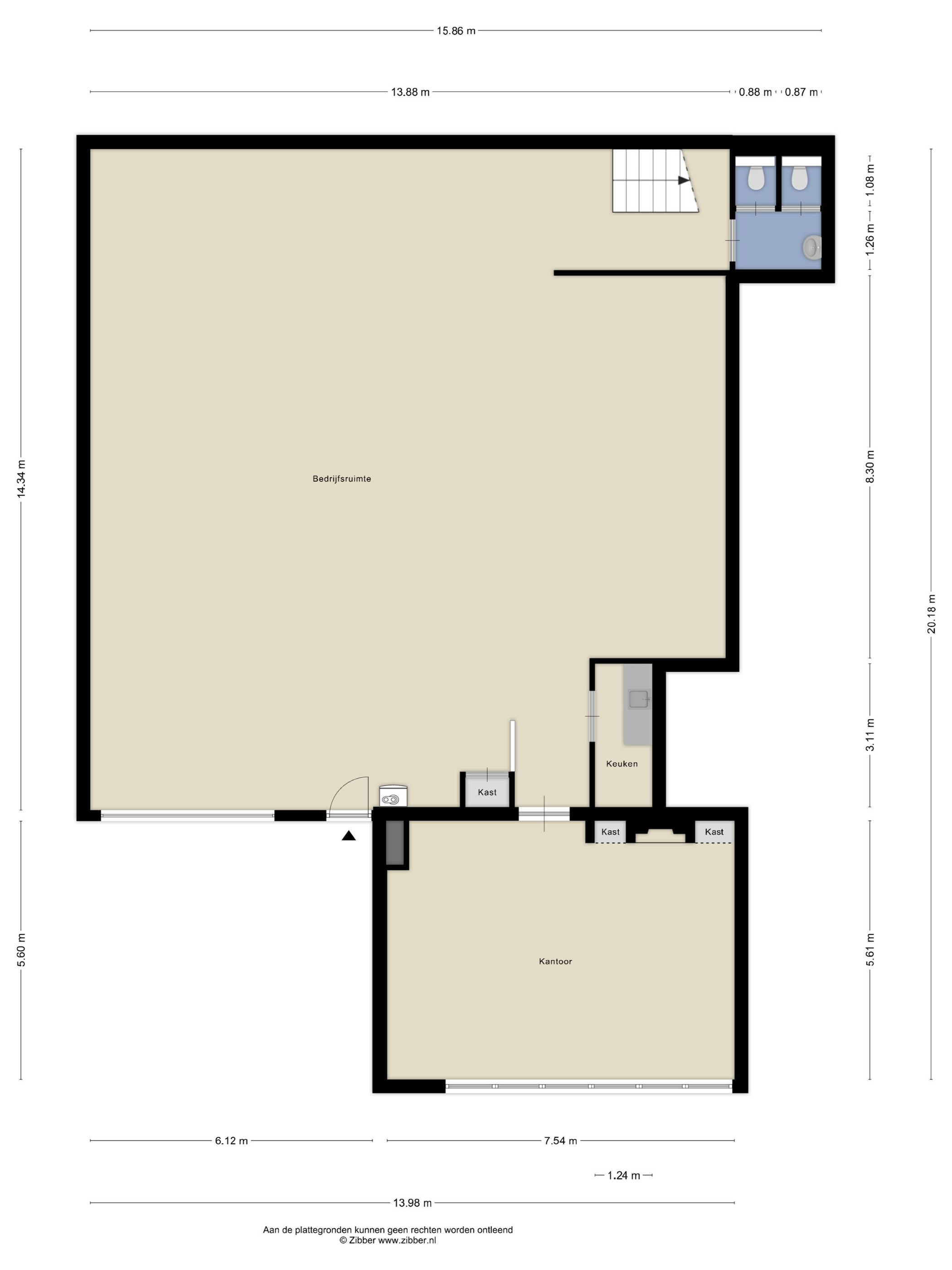 De bedrijfsunit met een vrije hoogte van 5,3 meter is voorzien van een betonvloer, elektrisch bedienbare overheaddeur (3.680 mm breed x 4.000 mm hoog), een lichtstraat, ledarmaturen alsmede toiletgroep (dames- en herentoilet met voorportaal en fonteintje). In de bedrijfsruimte (direct grenzend aan de kantoorruimte) is een keukenopstelling gerealiseerd voorzien van een close-in boiler. De kantoorruimte beschikt over een gestukt plafond met spot-verlichting, airco-unit en te openen ramen.