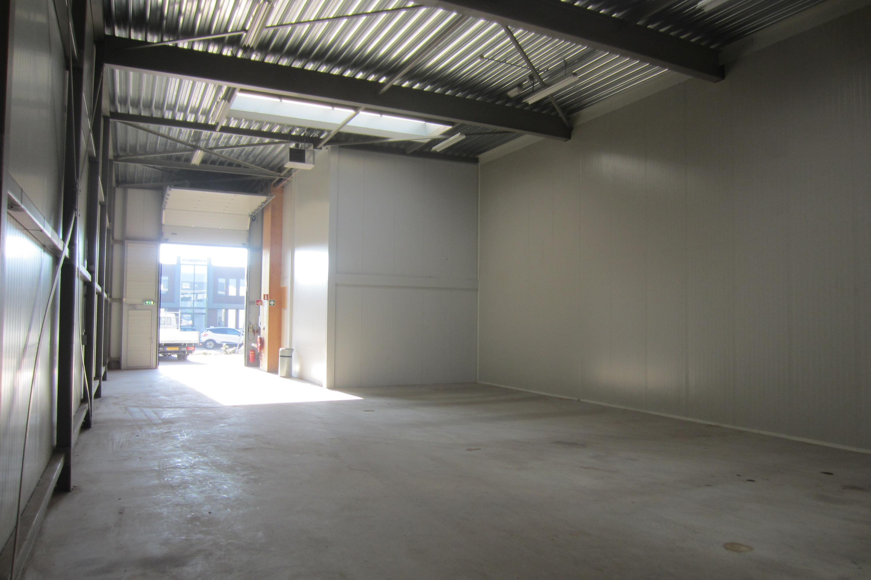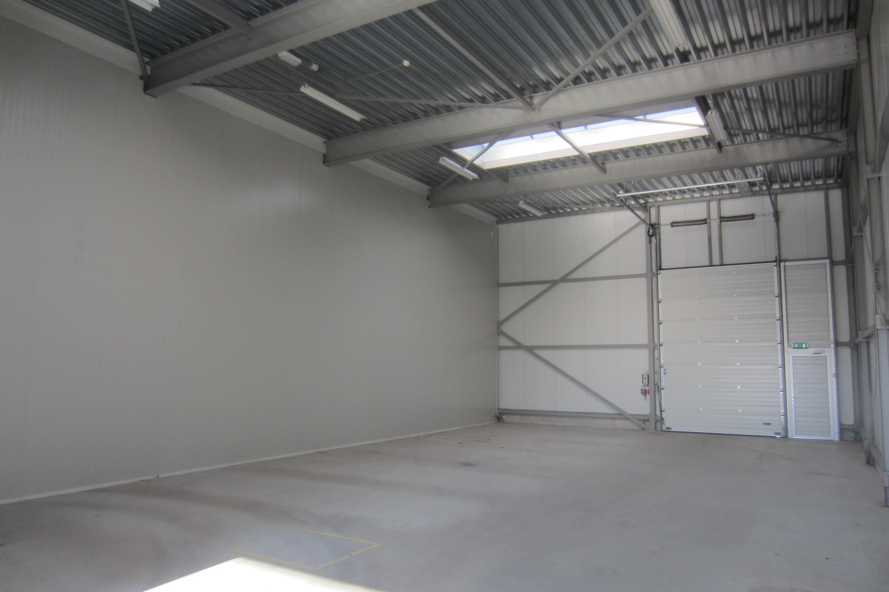 De bedrijfsruimte kent een vrije hoogte van circa 7-7,5 meter en omvat een volledig opleveringsniveau waaronder lichtstraat die zorgt voor een aangename en prettige werksfeer. Tevens voorziet het opleveringsniveau o.a. in betonvloer, 2 elektrisch bedienbare overheaddeuren, tl-armaturen, stortbak, gasheater (Intergas), alarminstallatie, camerabewaking, rookmelders, brandslanghaspel en krachtstroom.
