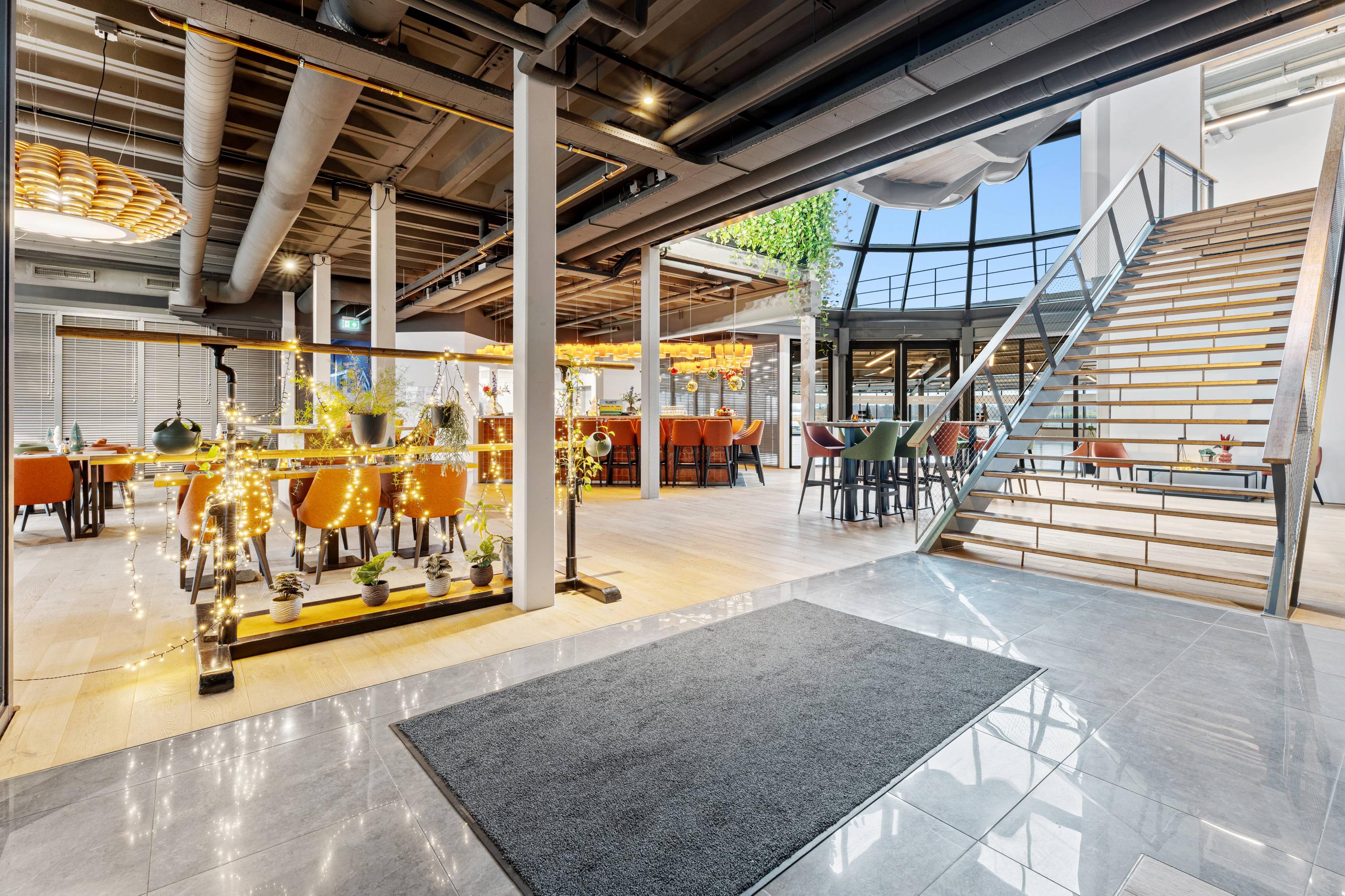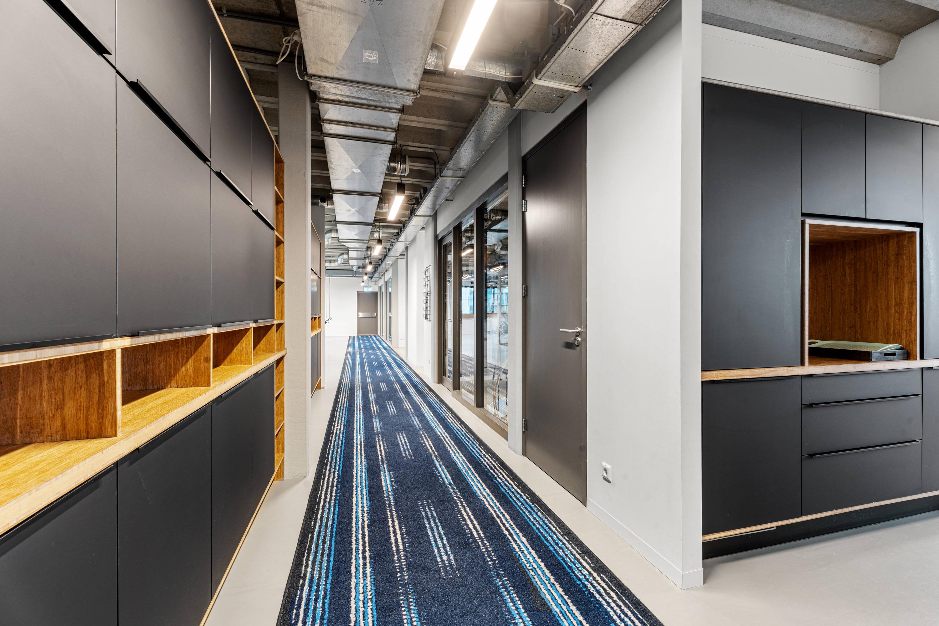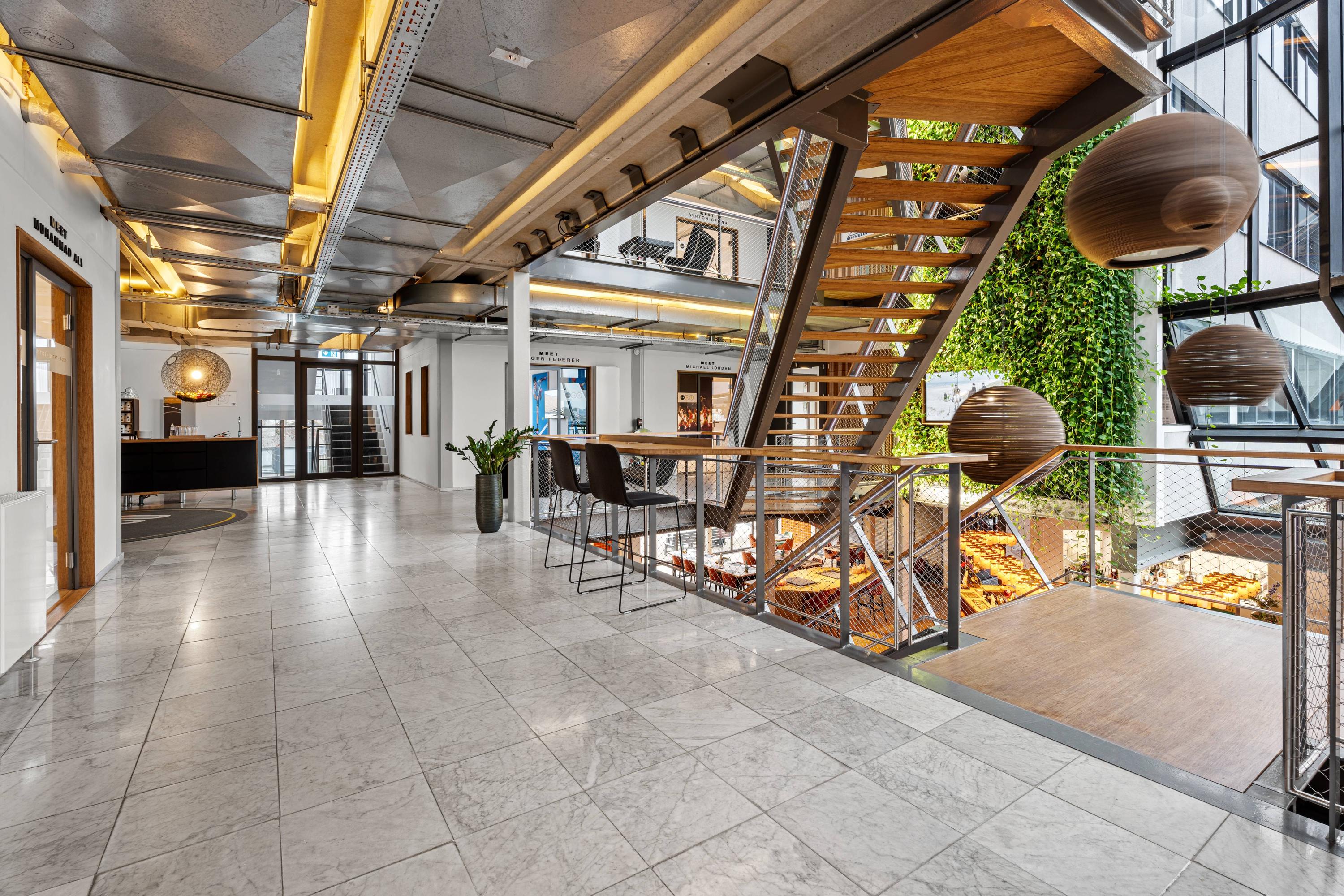 Op de begane grond is een zeer representatieve ontvangst gesitueerd met een uitgebreid bedrijfsrestaurant en dito gymfaciliteit. Het concept binnen het gebouw is zo ingericht dat huurder de werkplekken op het eigen kantoorveld heeft en in de gemeenschappelijke ruimtes gebruik kan maken van de pantry, toiletten en verschillende vergaderruimtes. De voor verhuur beschikbaar komende kantoorruimte ligt op de eerste verdieping en heeft een oppervlakte van circa 623 m² vvo (inclusief toebedeling algemene ruimtes). De, op de begane grond gelegen, showroom (intern verbonden met de kantoorruimte) kan tevens toegevoegd worden aan het gehuurde. De showroom betreft 1.155 m² vvo.