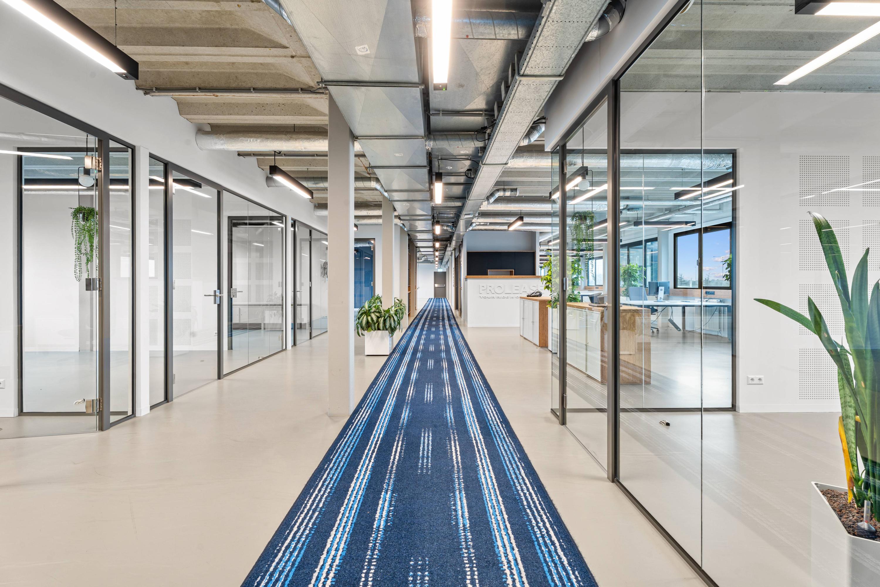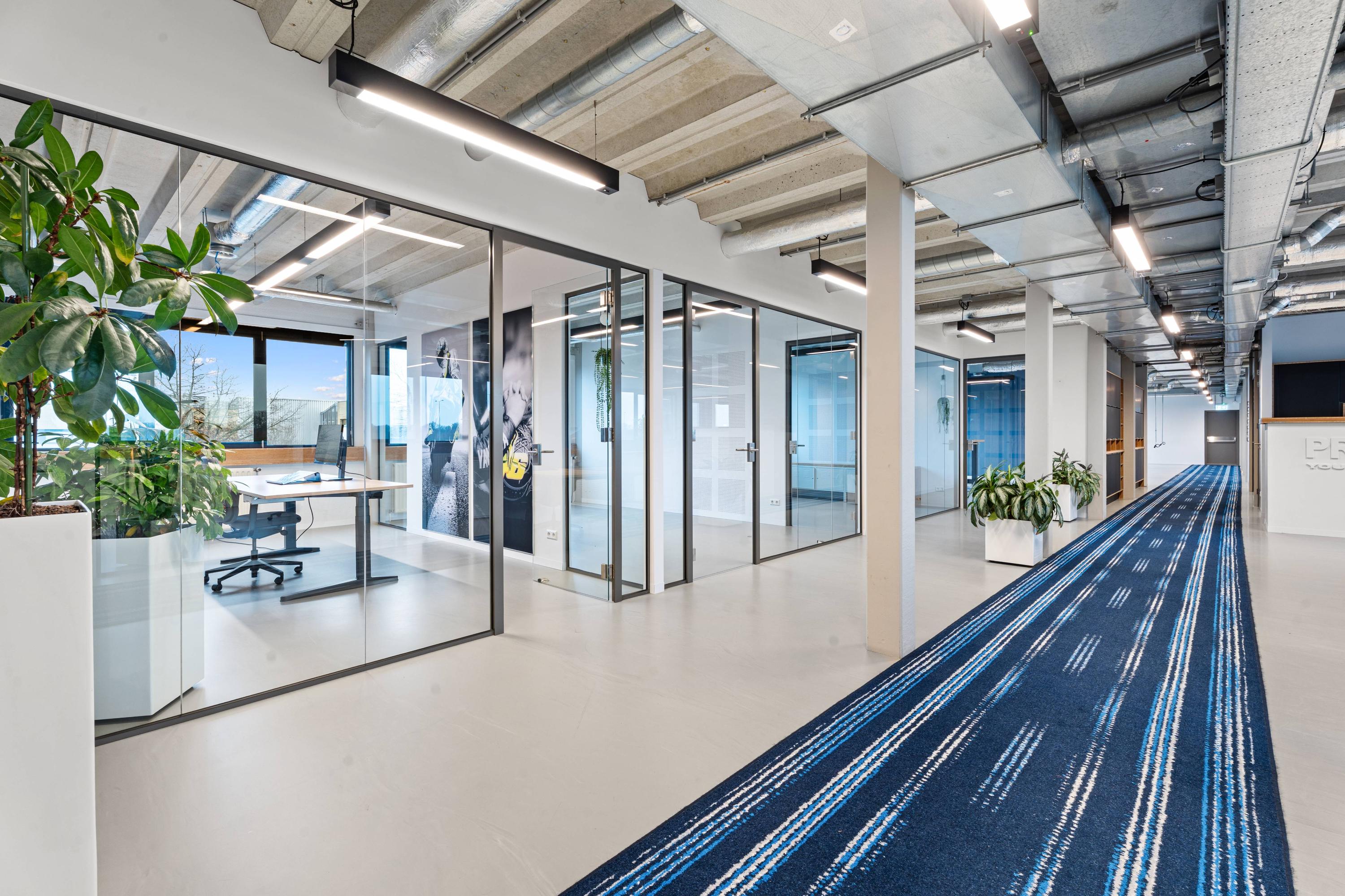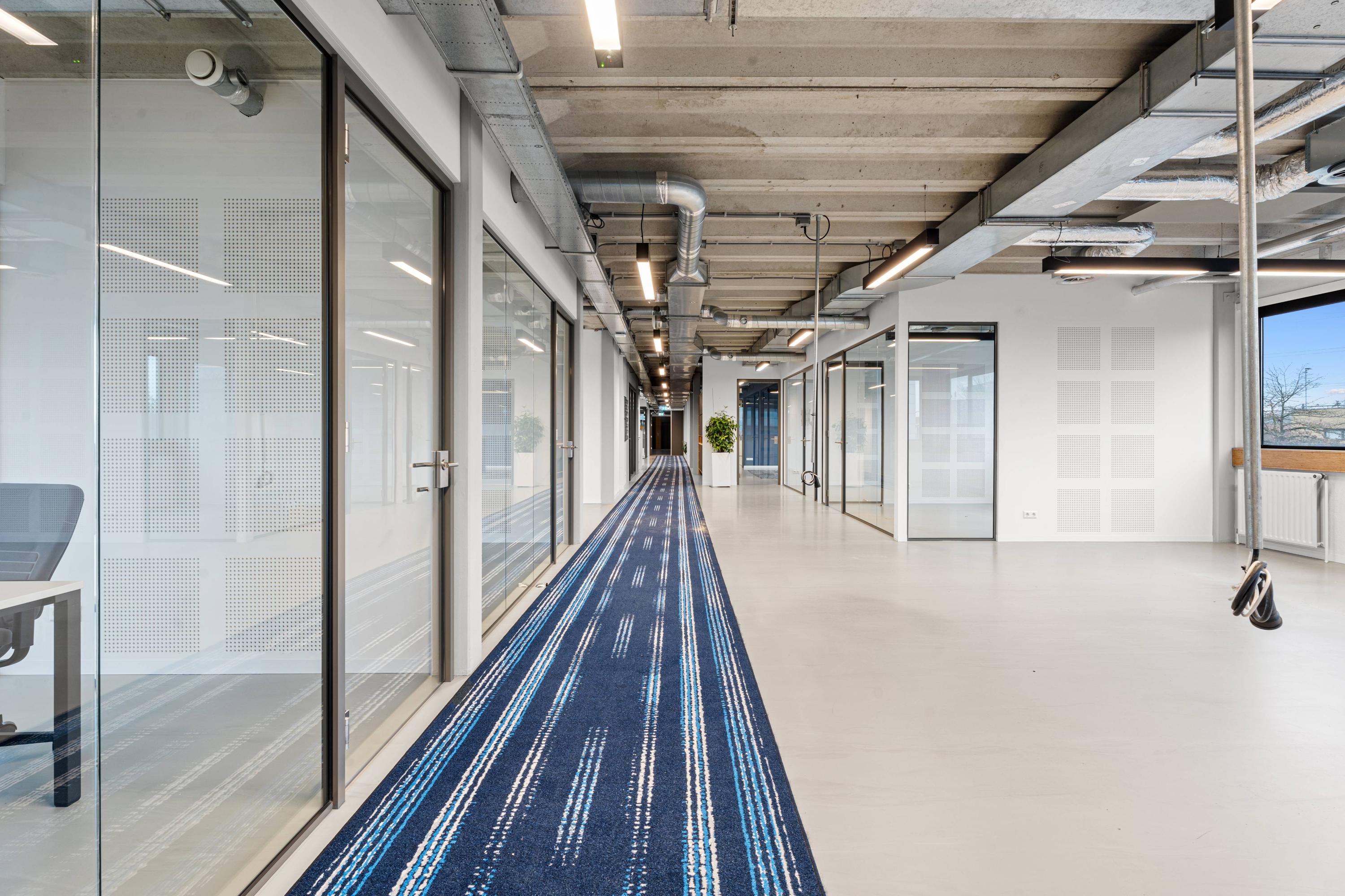 Op de begane grond is een zeer representatieve ontvangst gesitueerd met een uitgebreid bedrijfsrestaurant en dito gymfaciliteit. Het concept binnen het gebouw is zo ingericht dat huurder de werkplekken op het eigen kantoorveld heeft en in de gemeenschappelijke ruimtes gebruik kan maken van de pantry, toiletten en verschillende vergaderruimtes. De voor verhuur beschikbaar komende kantoorruimte ligt op de eerste verdieping en heeft een oppervlakte van circa 623 m² vvo (inclusief toebedeling algemene ruimtes). De, op de begane grond gelegen, showroom (intern verbonden met de kantoorruimte) kan tevens toegevoegd worden aan het gehuurde. De showroom betreft 1.155 m² vvo.