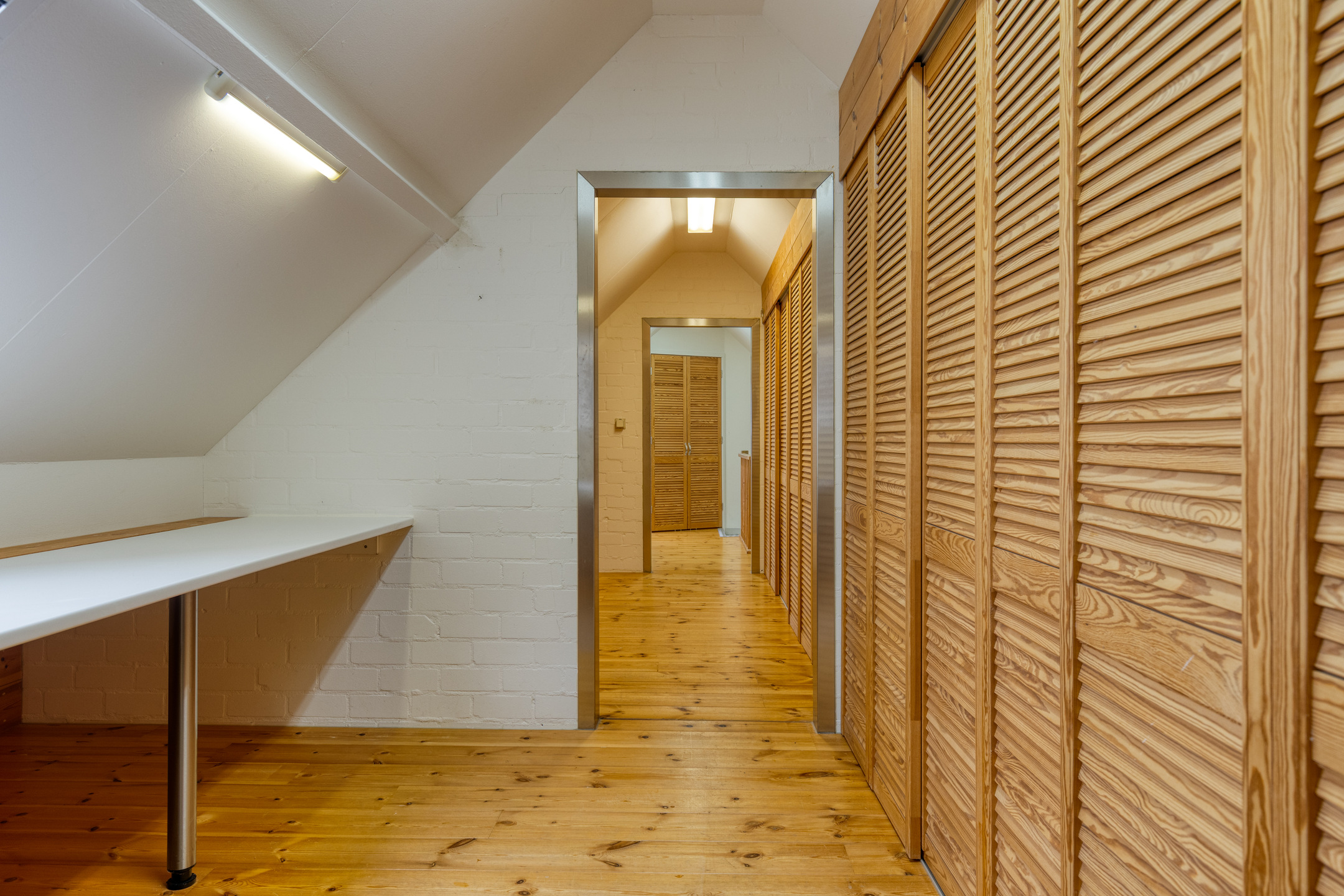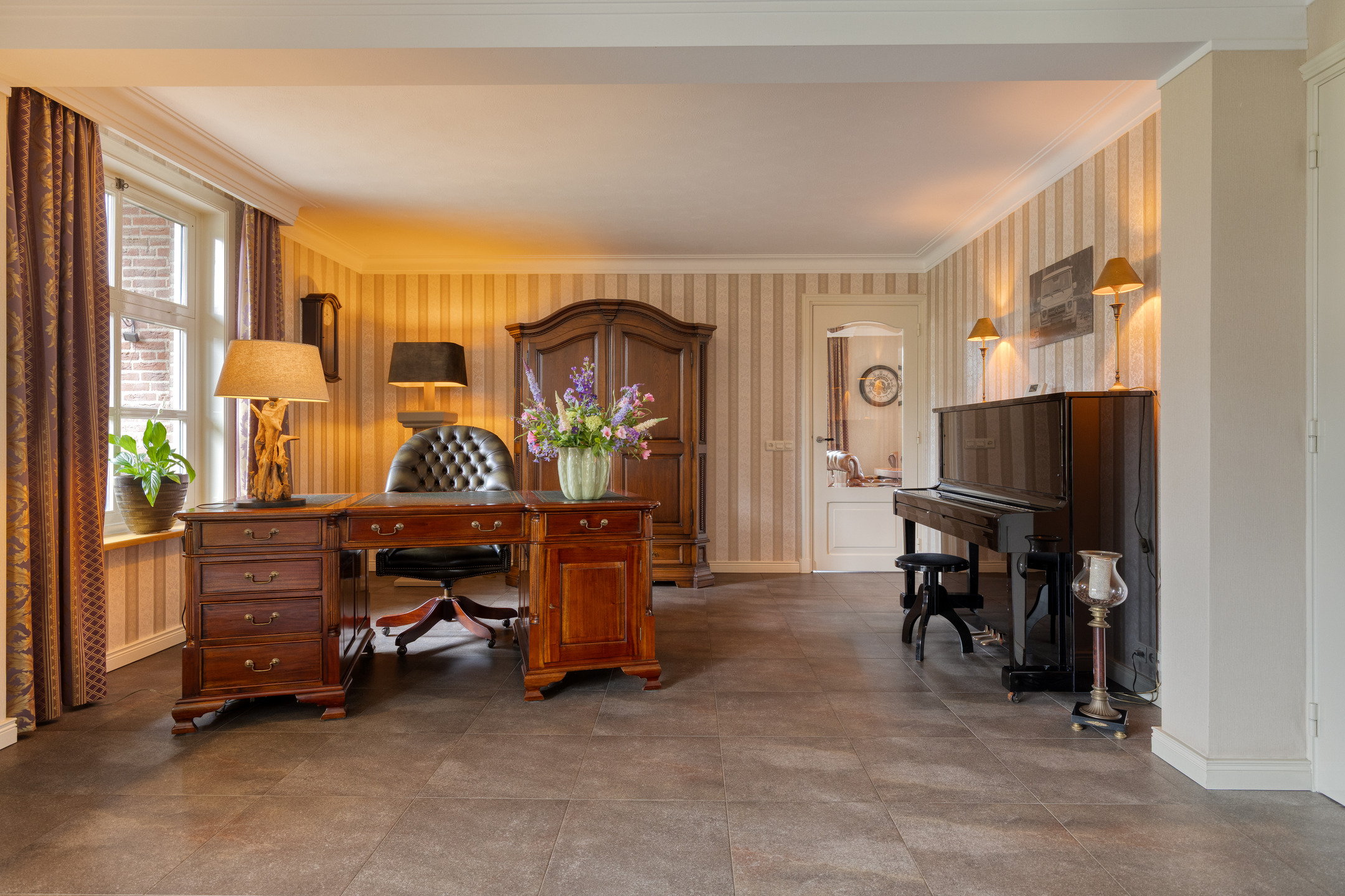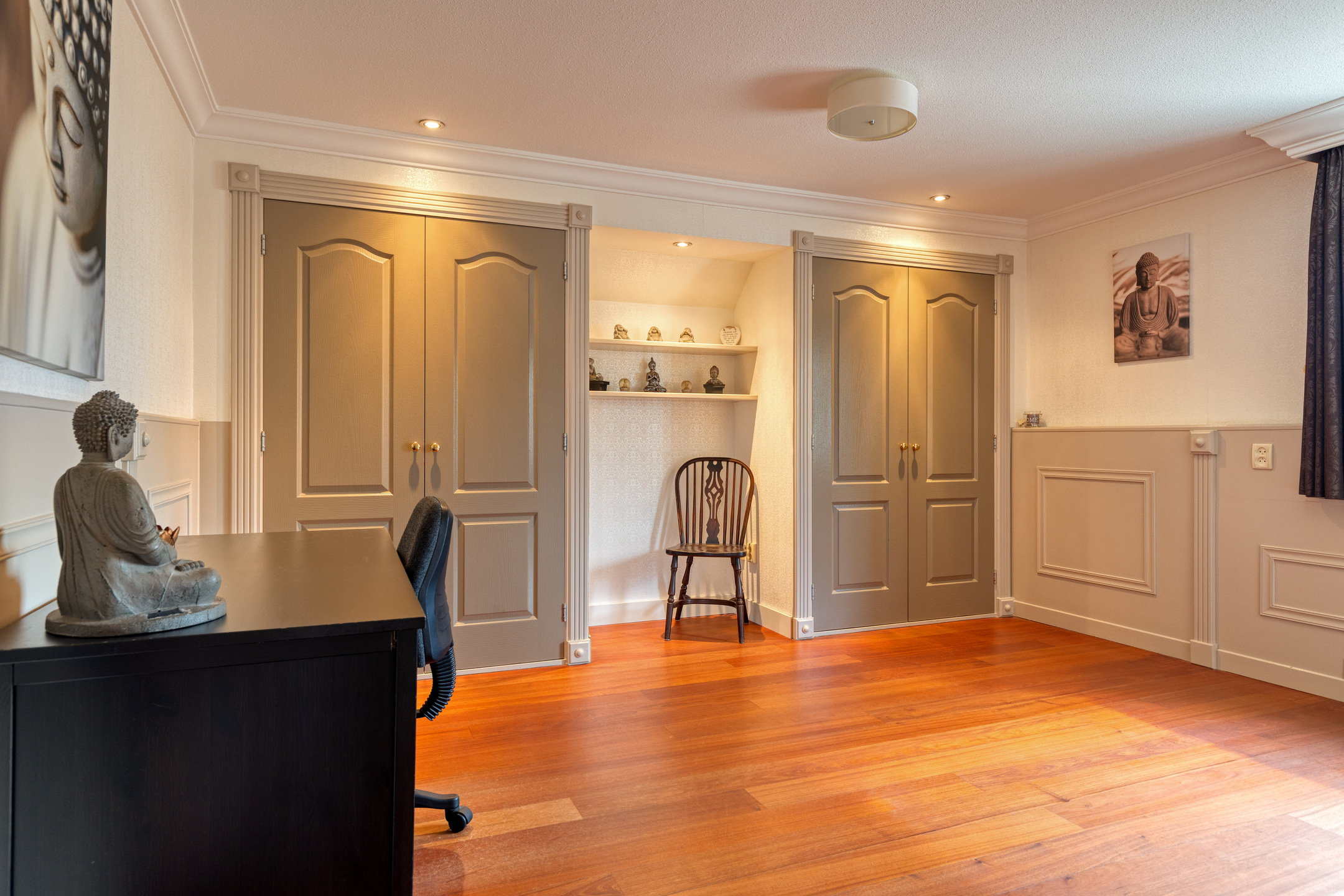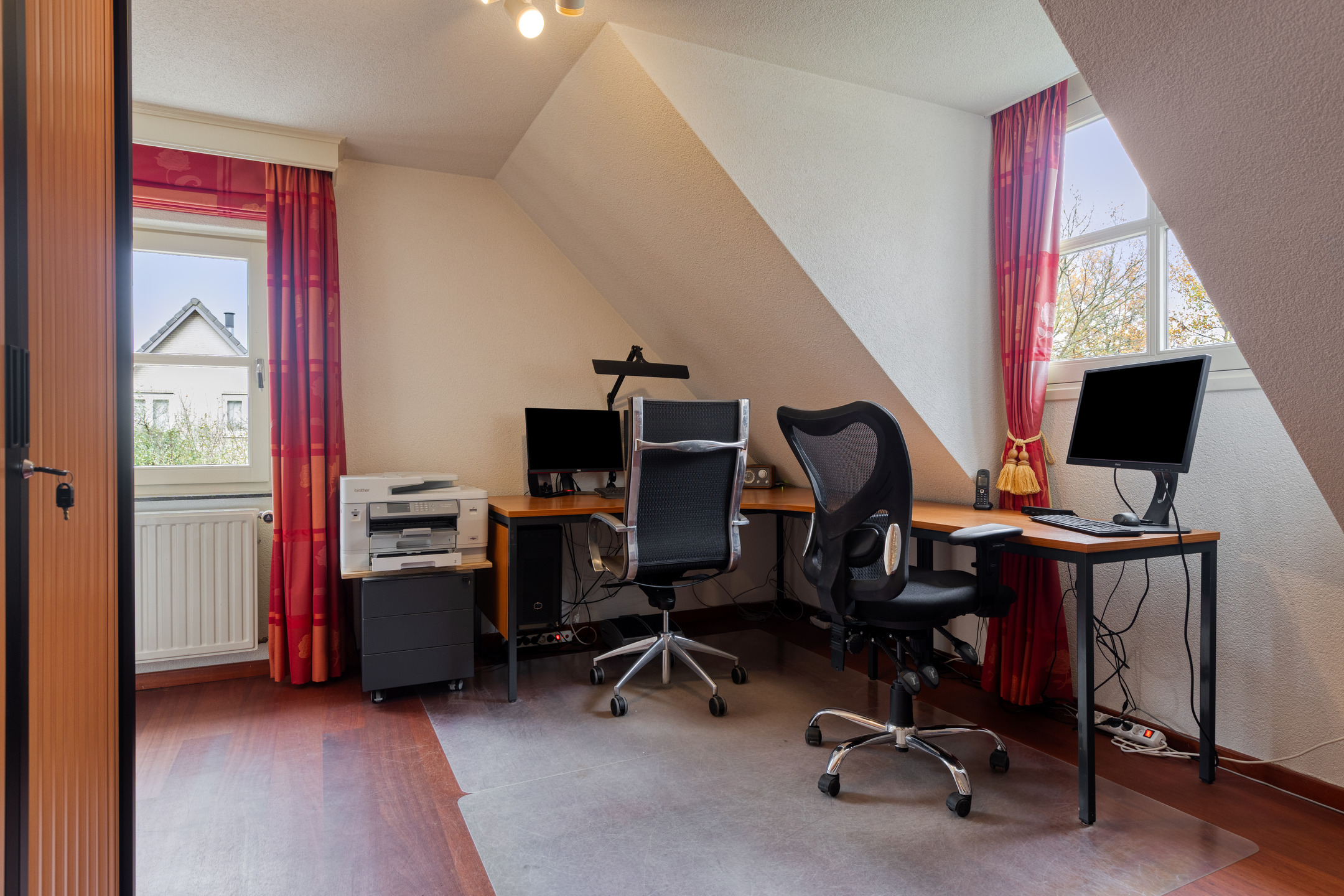- Eerste verdieping: de eerste verdieping biedt drie ruime slaapkamers, waarvan twee zijn voorzien van praktische, ingebouwde kasten die de ruimte optimaal benutten. De recent volledig gerenoveerde badkamer is modern ingericht en voorzien van een ligbad, inloopdouche, dubbele wastafel en toilet. Daarnaast bevindt zich op deze verdieping een royaal kantoor - een ideale plek voor administratieve werkzaamheden, zeker in combinatie met een bedrijfswoning.