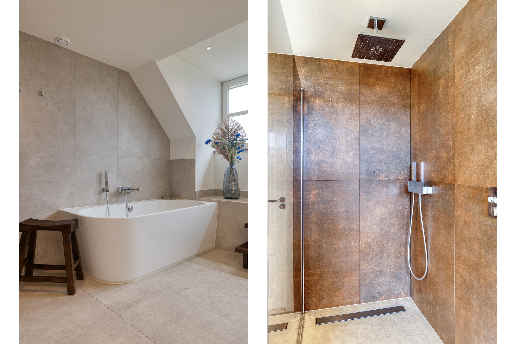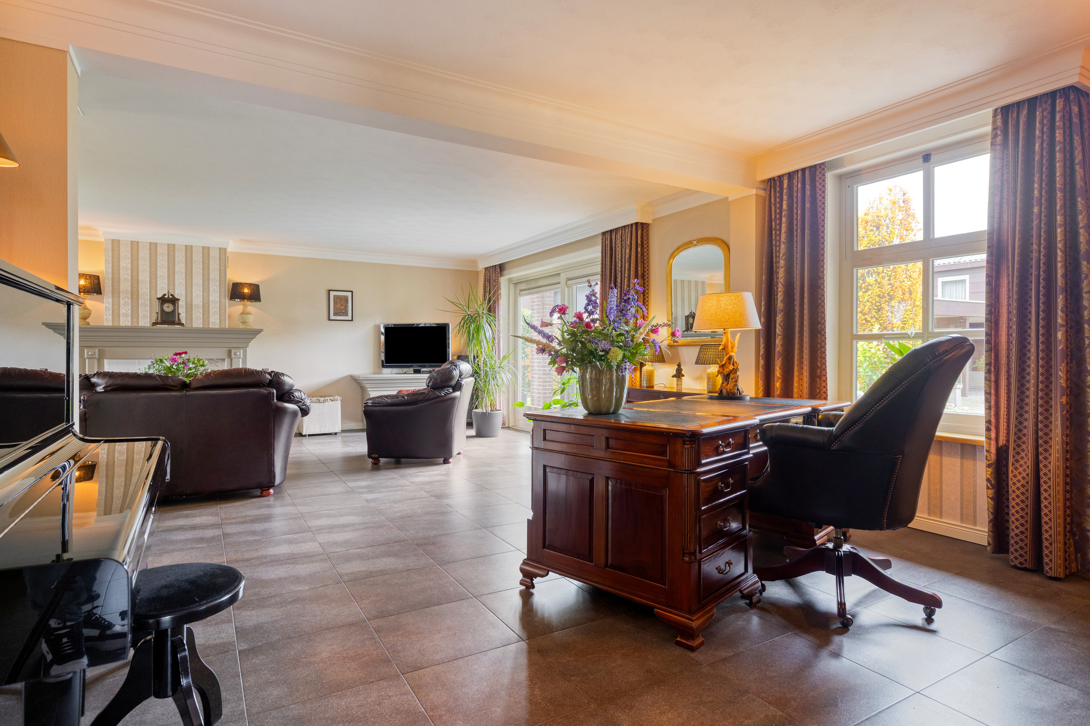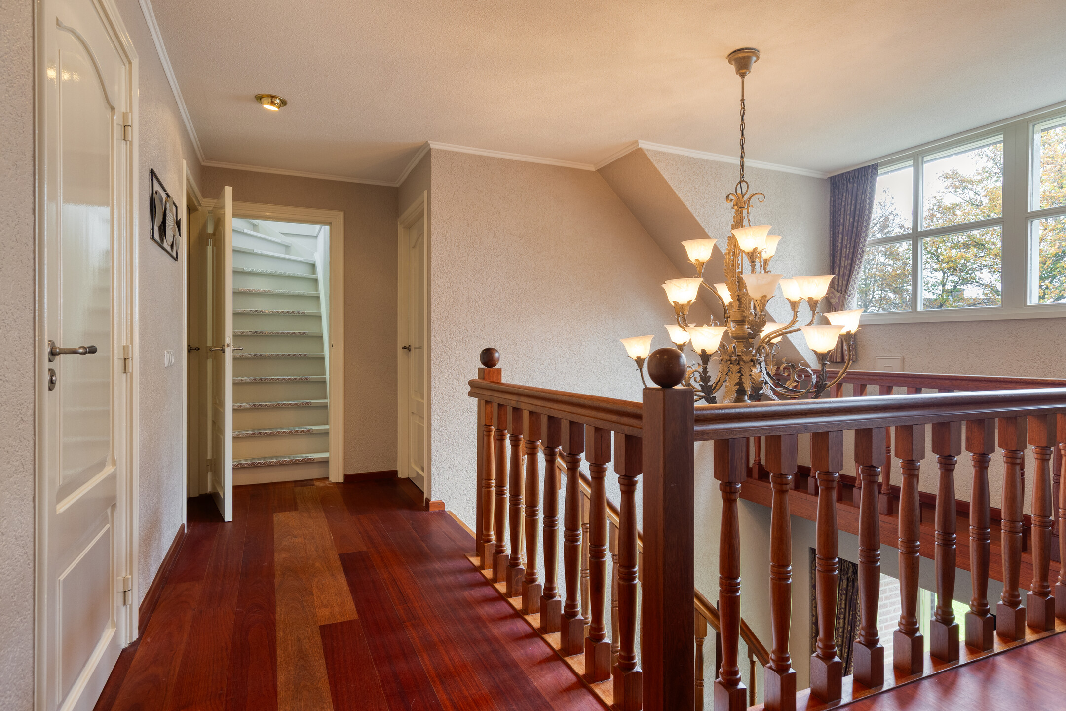 - Eerste verdieping: de eerste verdieping biedt drie ruime slaapkamers, waarvan twee zijn voorzien van praktische, ingebouwde kasten die de ruimte optimaal benutten. De recent volledig gerenoveerde badkamer is modern ingericht en voorzien van een ligbad, inloopdouche, dubbele wastafel en toilet. Daarnaast bevindt zich op deze verdieping een royaal kantoor - een ideale plek voor administratieve werkzaamheden, zeker in combinatie met een bedrijfswoning.