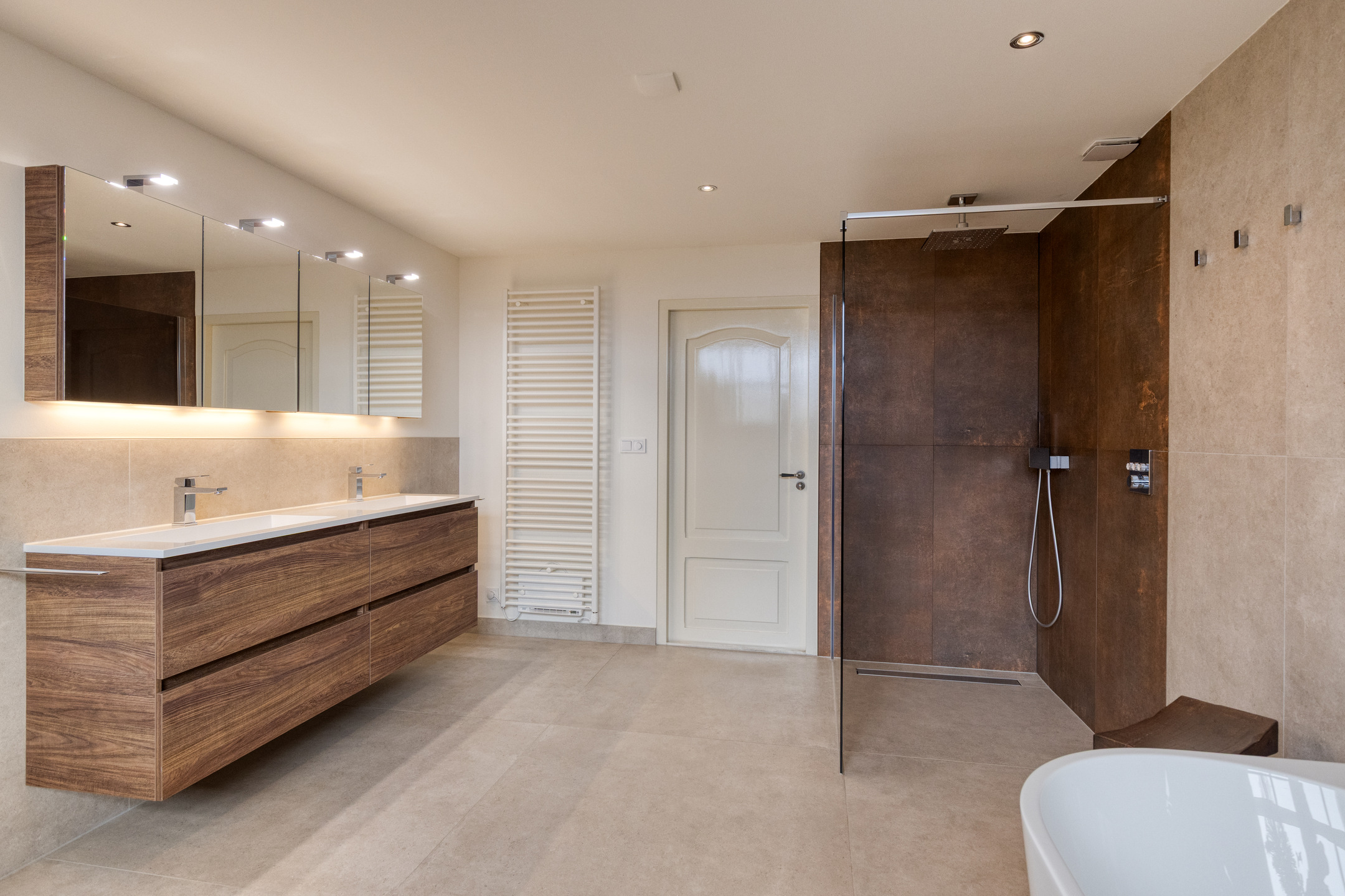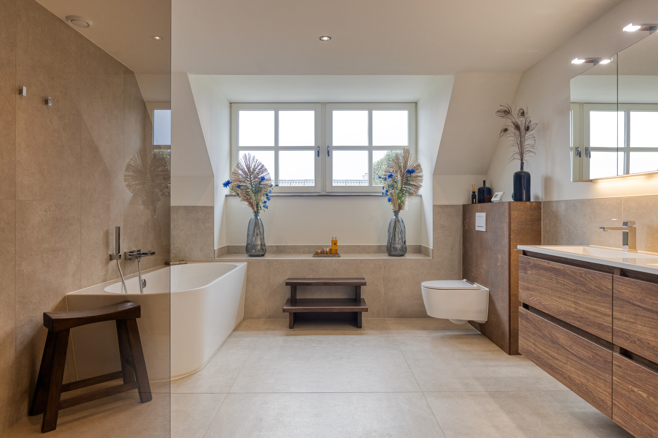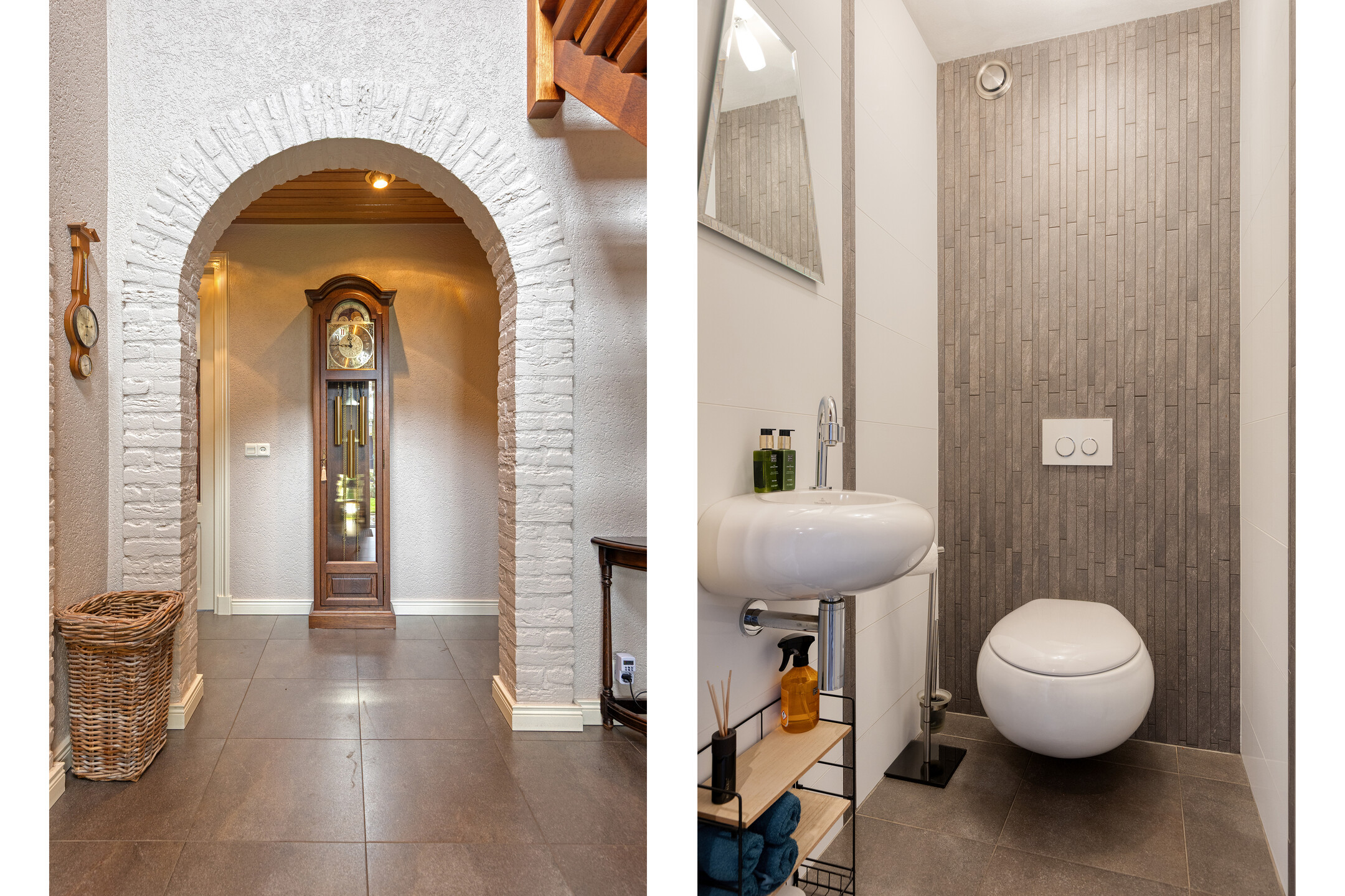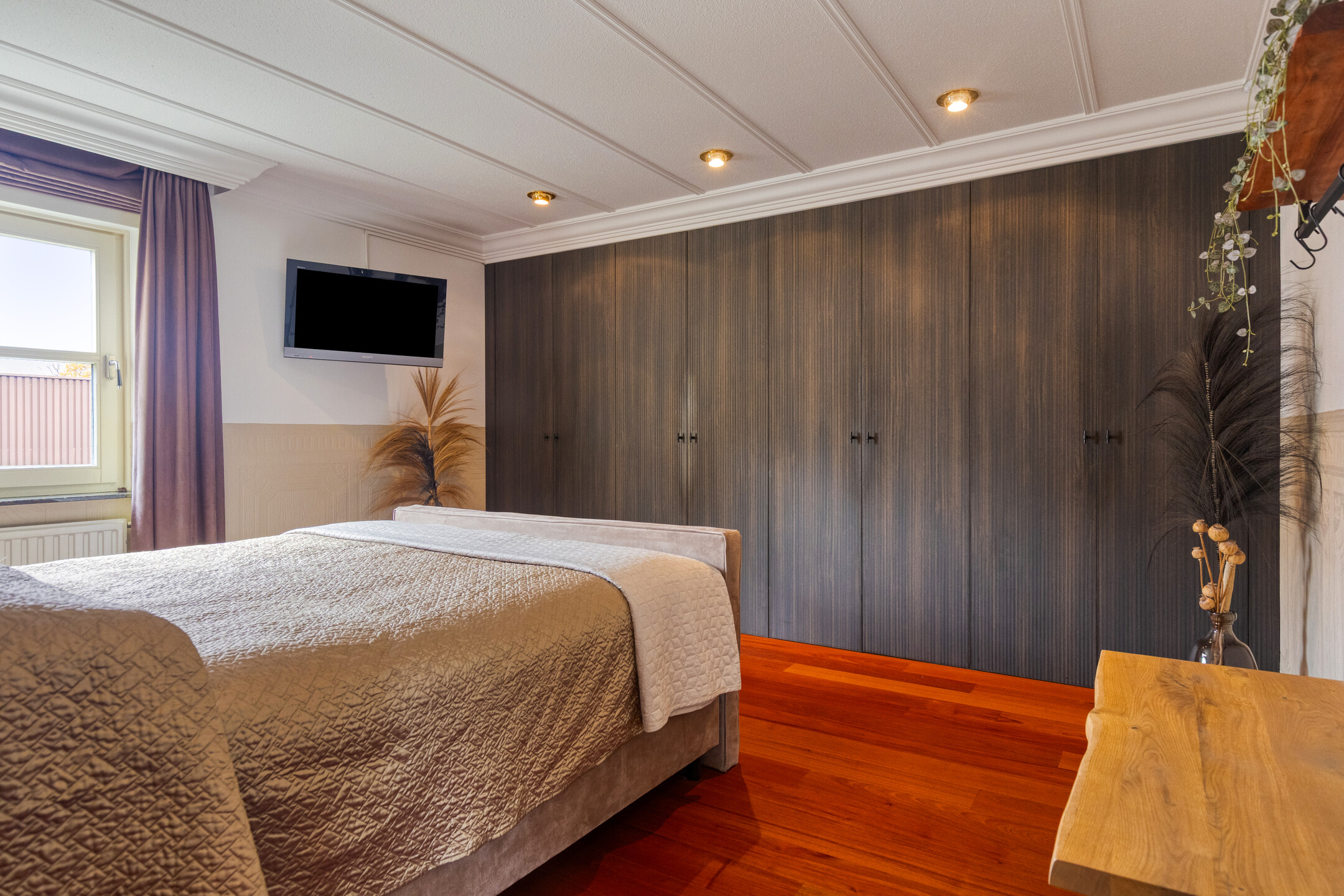 - Eerste verdieping: de eerste verdieping biedt drie ruime slaapkamers, waarvan twee zijn voorzien van praktische, ingebouwde kasten die de ruimte optimaal benutten. De recent volledig gerenoveerde badkamer is modern ingericht en voorzien van een ligbad, inloopdouche, dubbele wastafel en toilet. Daarnaast bevindt zich op deze verdieping een royaal kantoor - een ideale plek voor administratieve werkzaamheden, zeker in combinatie met een bedrijfswoning.