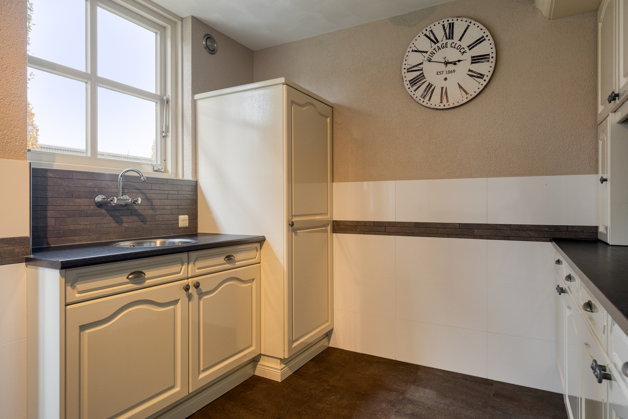 - Begane grond: lichte entree met meterkast, toilet en garderobe; woonkamer met veel raampartijen en toegang tot de tuin; ruime woonkeuken voorzien van moderne apparatuur; bijkeuken met aansluitingen voor was- en droogapparatuur.