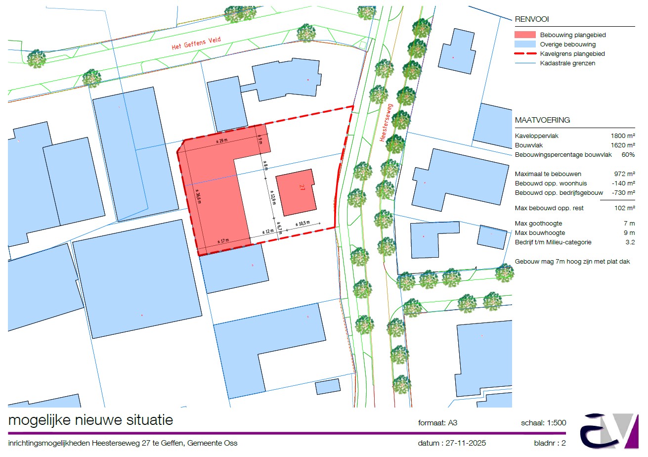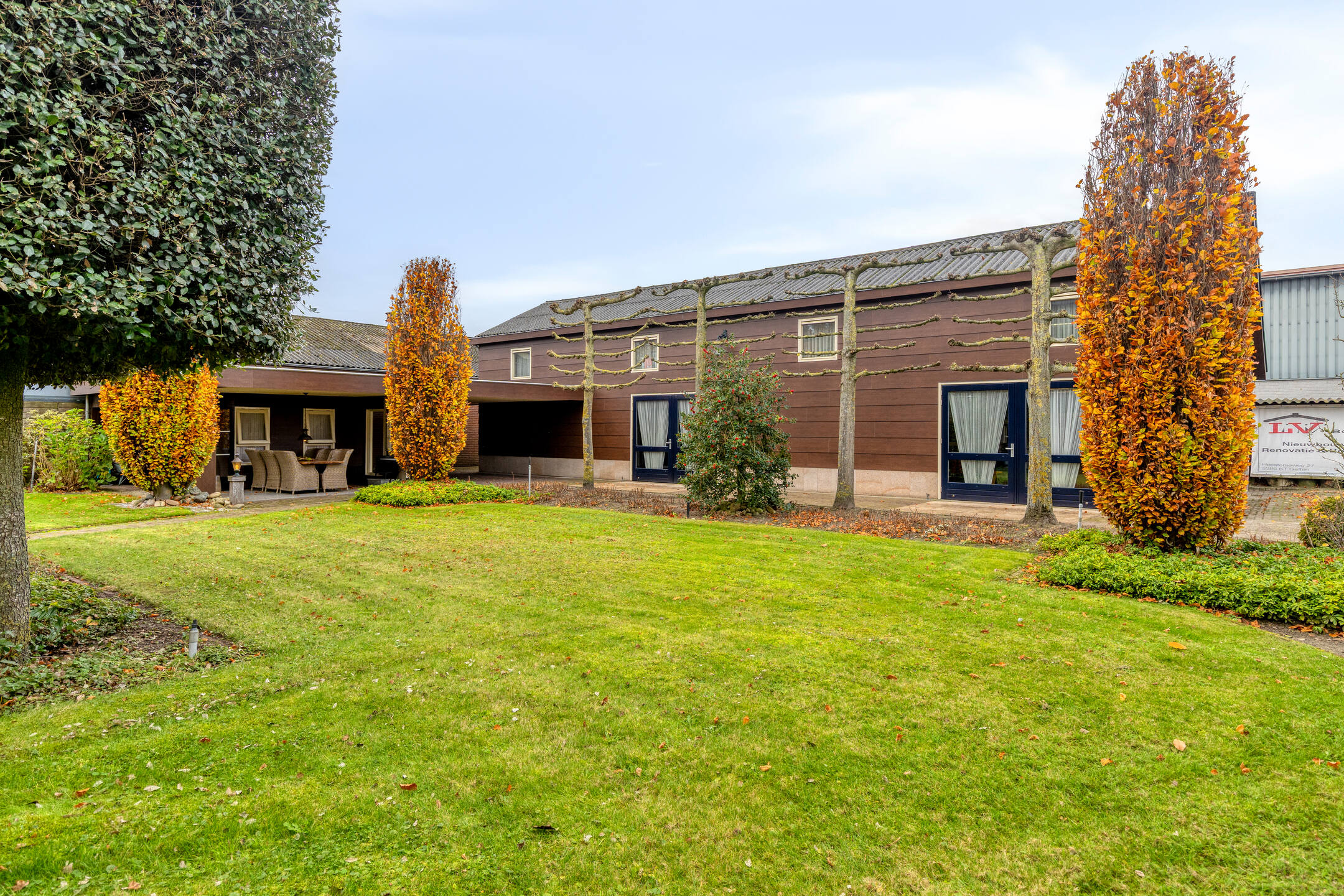 Achter de woning bevindt zich een ruim gedeelte van het perceel dat momenteel grotendeels onbebouwd is. Dit biedt aanzienlijke ontwikkelingsmogelijkheden voor de toekomst. Gezien de huidige bestemming ‘Bedrijf-1’ en het daarbij geldende maximale bebouwingspercentage van 60% binnen het bouwvlak, in combinatie met een toegestane bouwhoogte van 9 meter, bestaat de mogelijkheid om op dit perceel een bedrijfshal van circa 730 m² te realiseren. Dit maakt het object bijzonder interessant voor ondernemers die wonen en werken op één locatie willen combineren of voor wie extra bedrijfsruimte wenst te creëren.