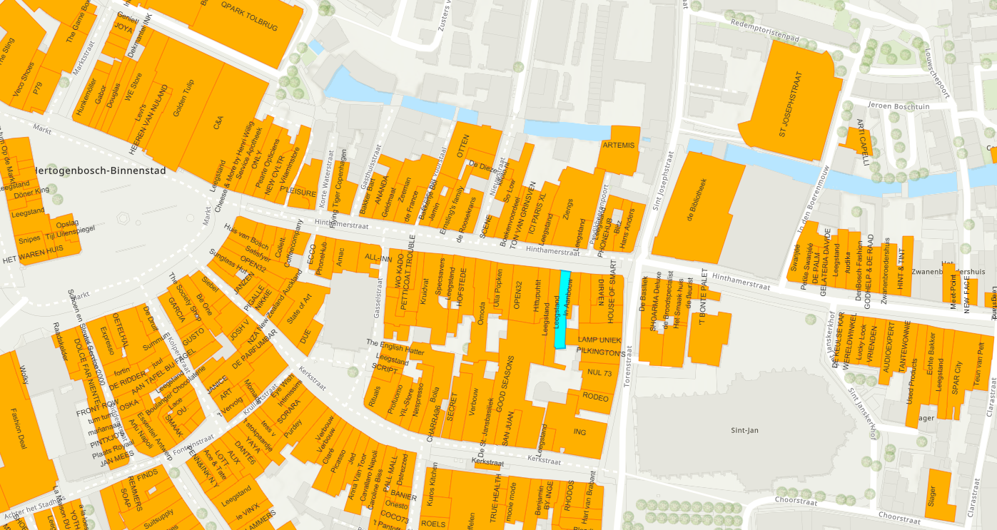 Onderhavige winkelruimte is gelegen aan de Hinthamerstraat, een van de meest levendige en druk bezochte winkelstraten van 's-Hertogenbosch. Omdat de Hinthamerstraat rechtstreeks aansluit op de Bossche Markt, is de locatie extra gunstig te noemen, want het object ligt op slechts 50 meter van de Markt, het hart van de binnenstad. Er is hier een diversiteit aan landelijke formules te vinden zoals Kruidvat, Amac, Specsavers, Bakkertje Bol, ICI Paris XL en een filiaal van Zeeman.