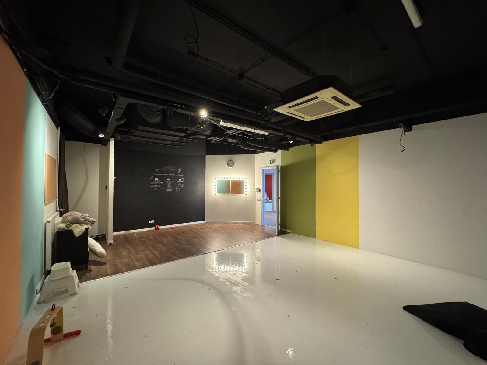 - gladde betonvloer, nu afgewerkt met laminaat;