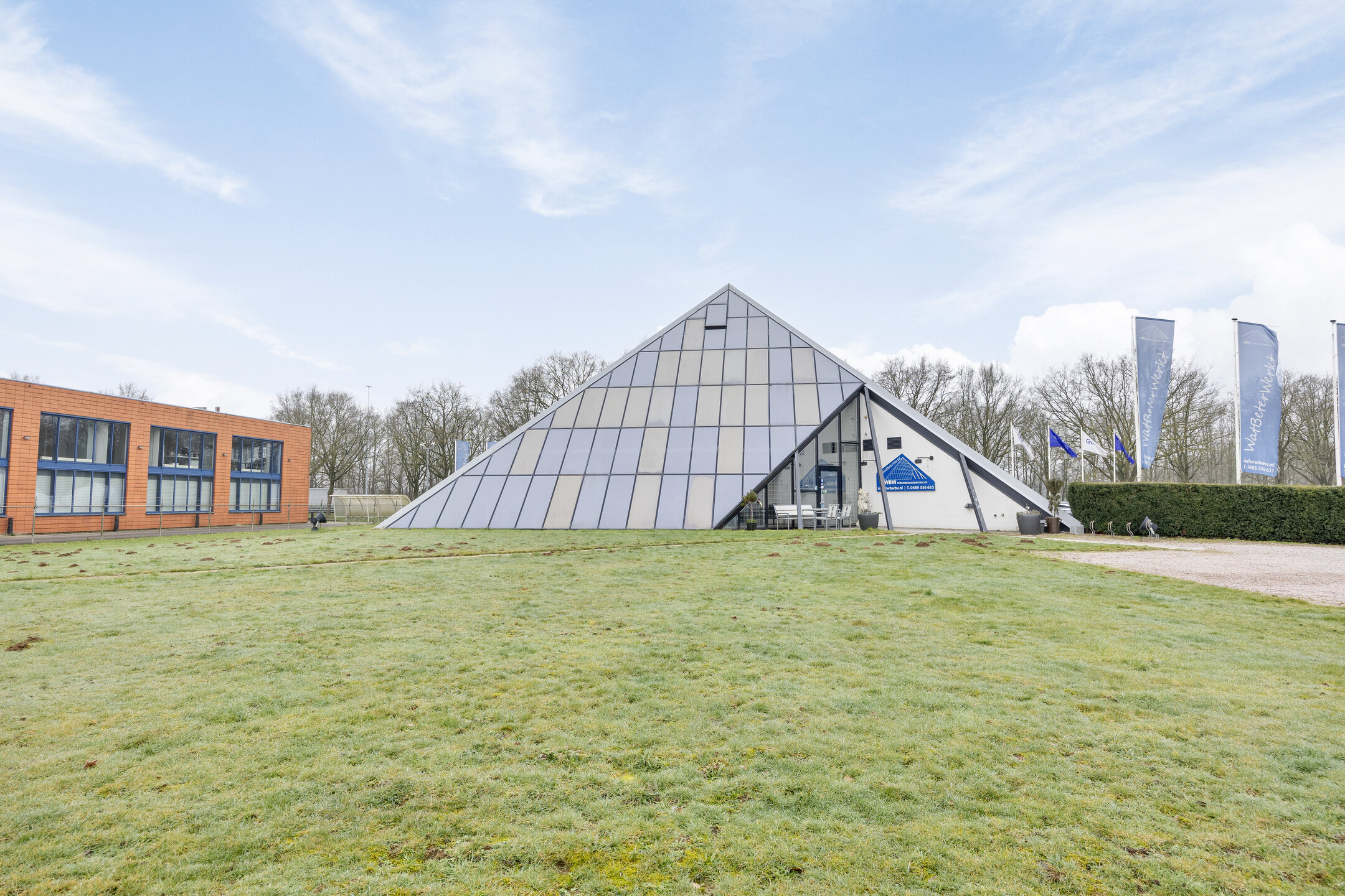 Het 'Louvre' of de 'Piramide' van Cuijk!? Geef het een naam, maar feit is dat nagenoeg iedereen dit opvallende gebouw langs de A73 wel kent en wij mogen dit gebouw namens eigenaar te koop aanbieden. Een unieke mogelijkheid om uw onderneming dezelfde bekendheid te geven of naar wens een geheel nieuw, eigen gebouw te ontwikkelen. Het bestaande piramidevormig gebouw (oorspronkelijke bouwjaar 1991) is verdeeld over drie bouwlagen met een totale oppervlakte van circa 836 M² bvo / 580 m² vvo (394 m² begane grond, 135 m² op de eerste verdieping en 51 m² op de tweede verdieping).
