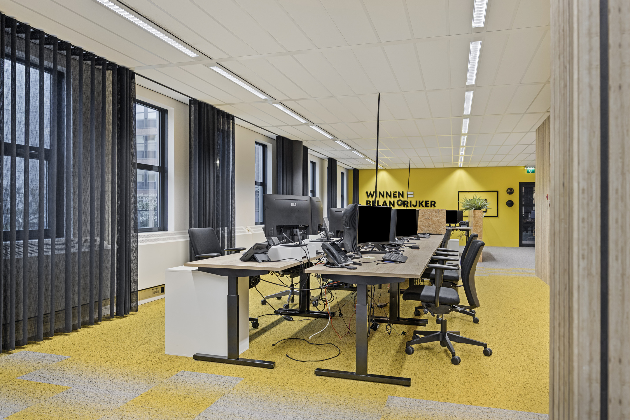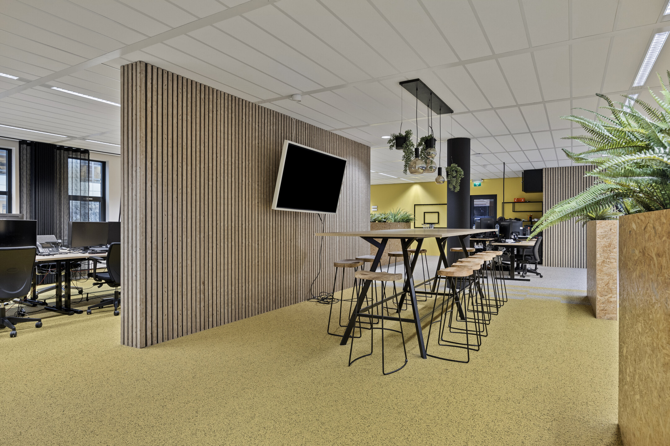 De kantoorruimte bestaat met name uit een open ruimte. Na de entree is aan de linkerzijde een pantry gesitueerd en aan de rechterzijde een spreekkamer.