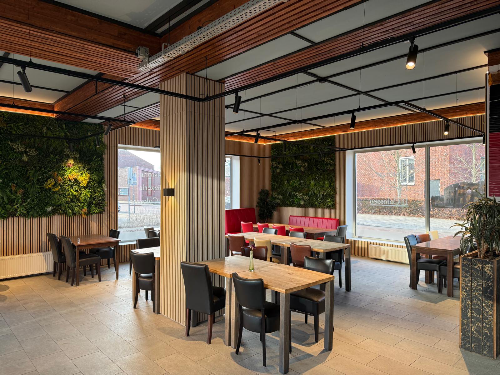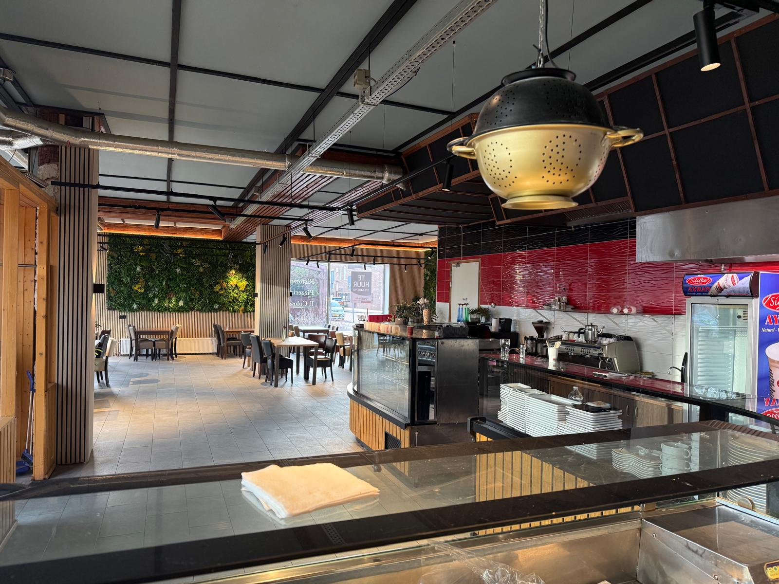 Het restaurant met een oppervlakte van circa 182 m² bvo is per direct beschikbaar. Bij binnenkomst loopt men recht op de grote bar, waar meer dan voldoende ruimte is om voorraad te koelen aan de ene zijde. Aan de andere zijde is er ‘Pizza Corner’ aangebracht. De bar en counter zijn erg ruim bemeten, mede omdat achter de bar ook de ‘open’ keuken is geplaatst.