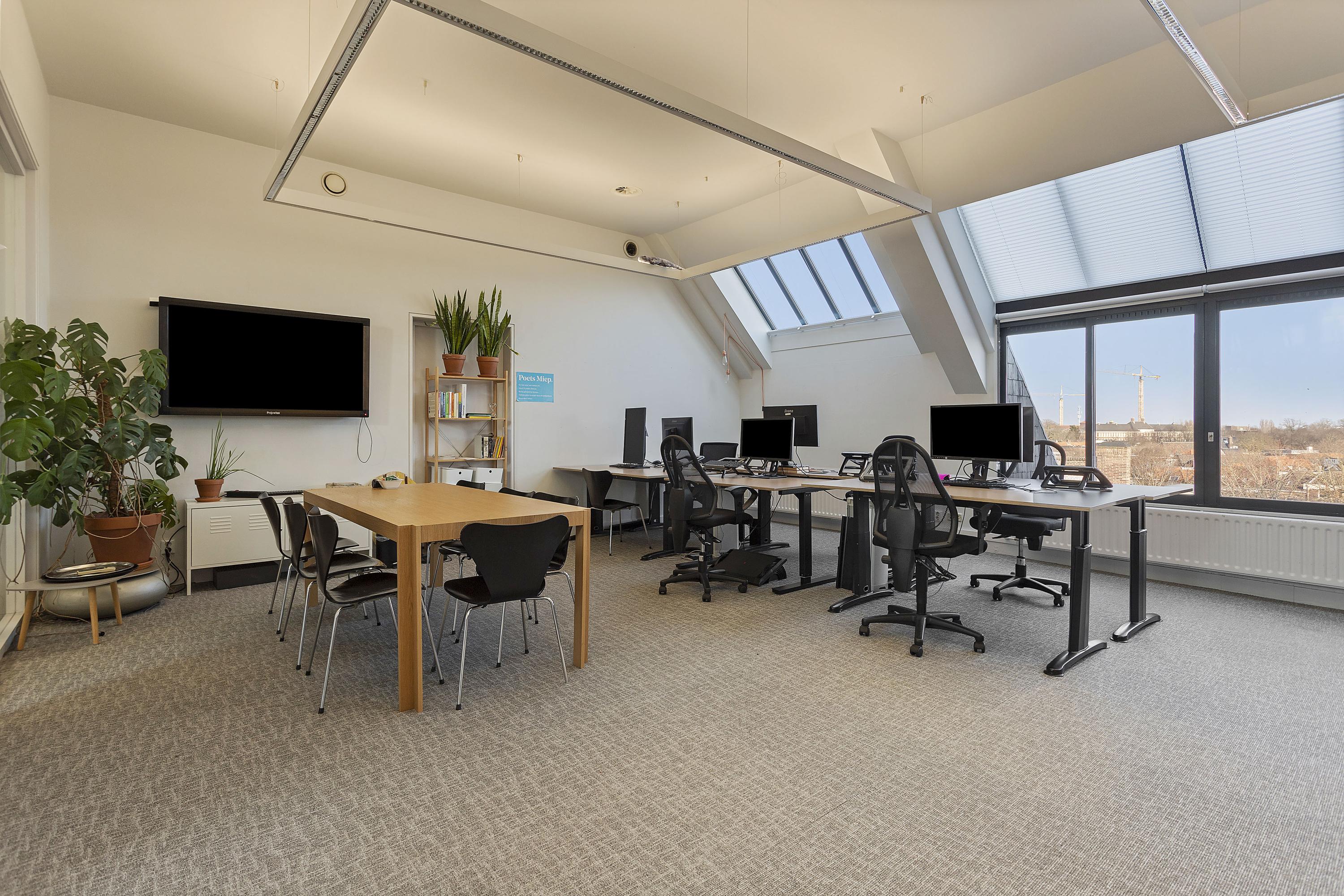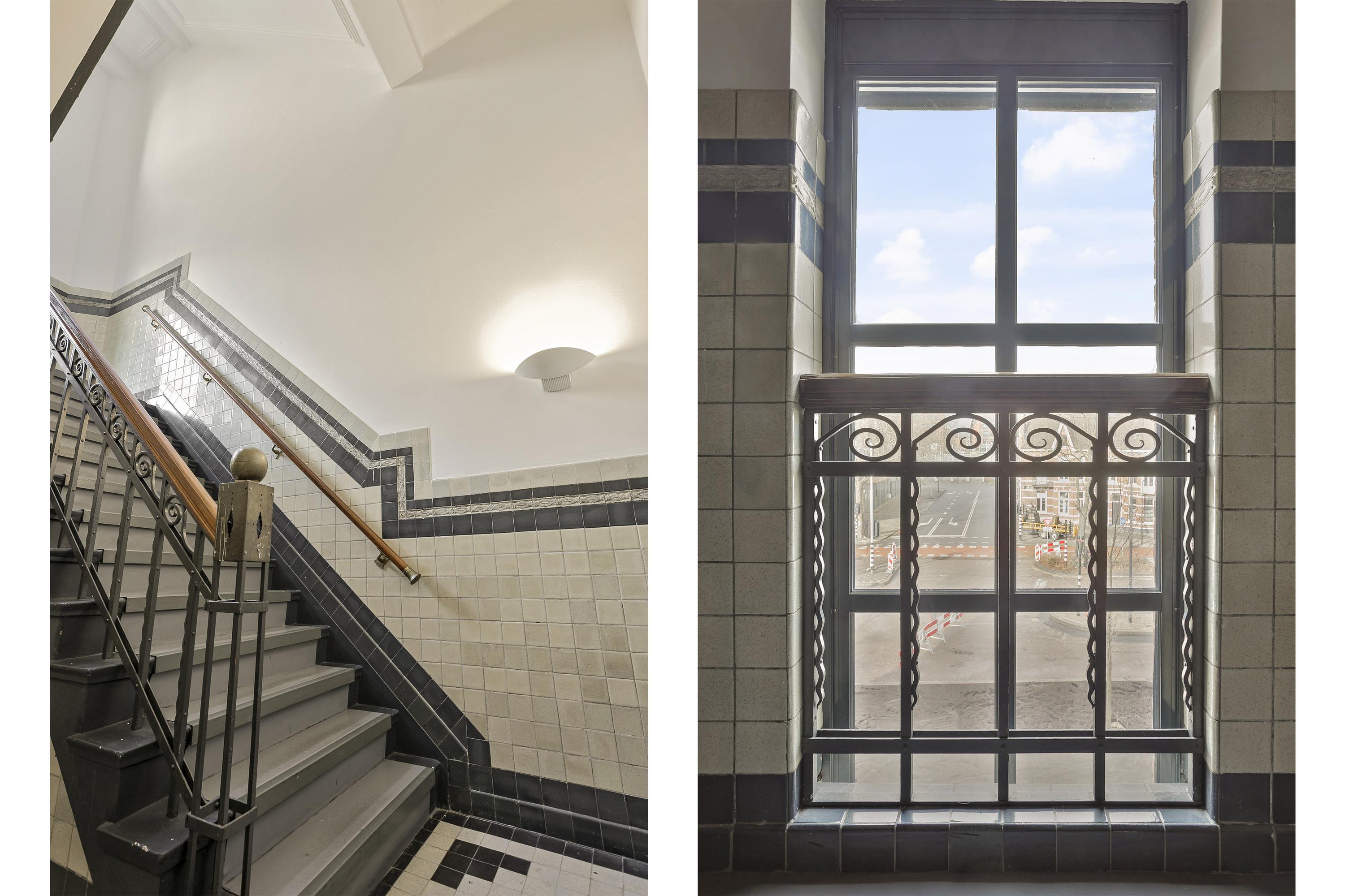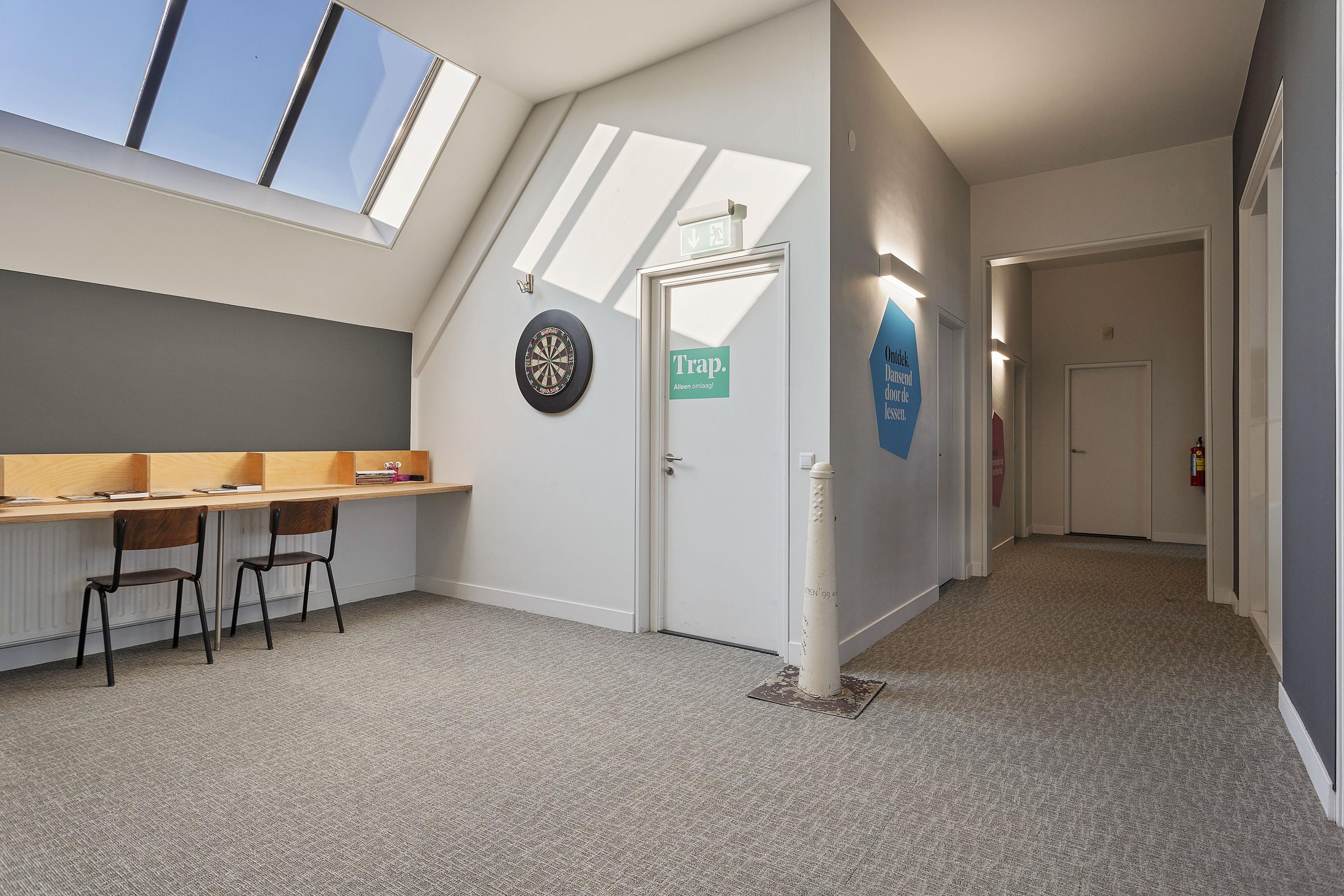 - plafonds, voorzien van stucwerk en geluidsisolerende bekleding, deels systeemplafonds;
