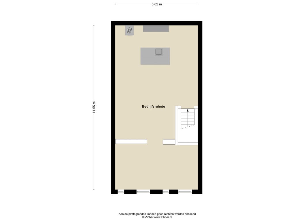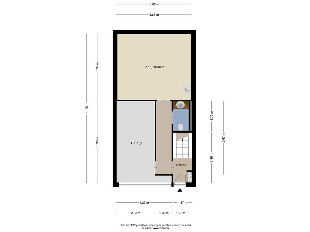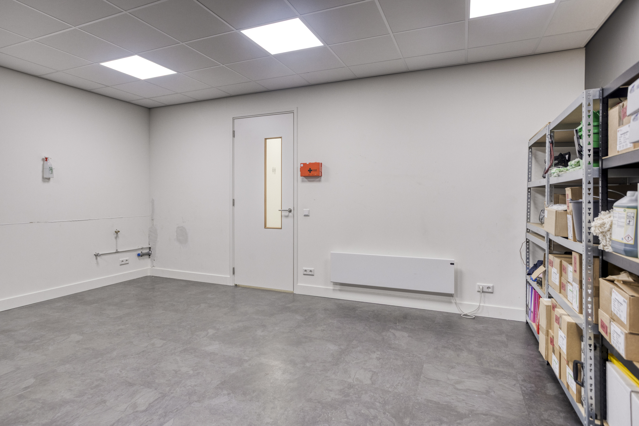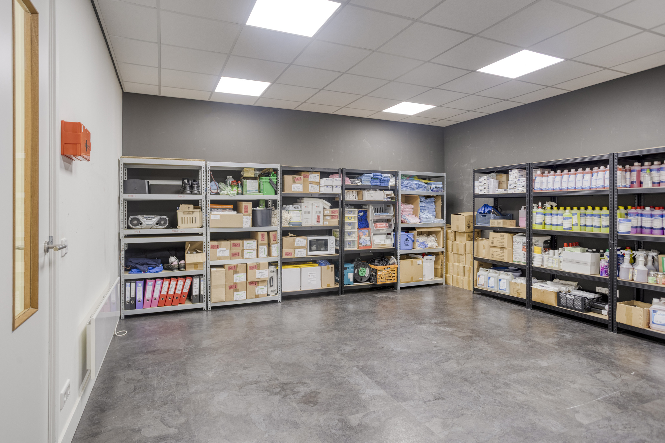 De begane grond is voorzien van een entree, meterkast met water-, elektriciteits- en telefoonaansluiting, een gang met toegang tot de magazijnruimte, spreekruimte/opslagruimte en een moderne toiletruimte met hangcloset en wastafel. De magazijnruimte beschikt over een PVC-vloer, een handmatig bedienbare overheaddeur (afmetingen: 3,5 meter hoog x 3,7 meter breed), ledverlichting en een poederblusser.