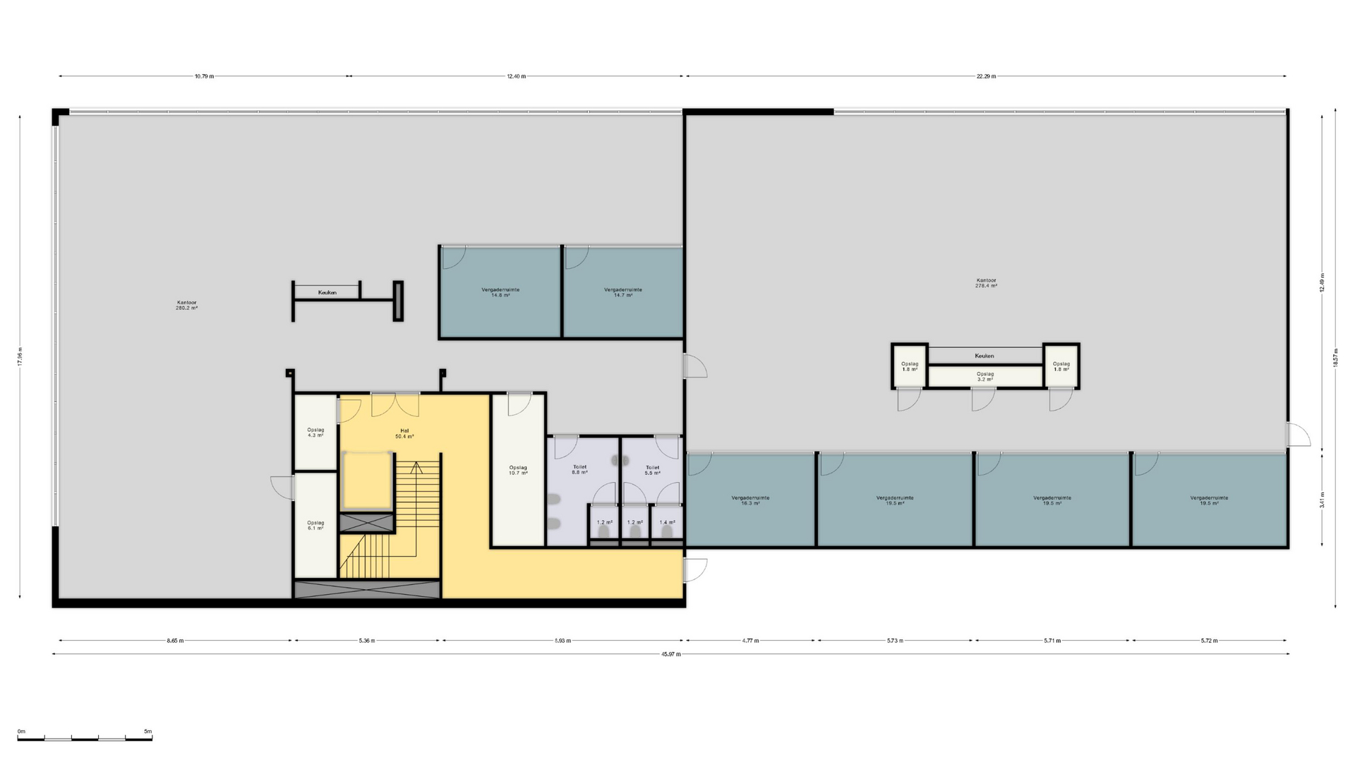 De indeling is logisch en efficiënt, verdeeld over meerdere verdiepingen. De kantoorvloeren zijn flexibel in te richten en geschikt voor uiteenlopende doeleinden, variërend van traditionele werkplekken tot open kantoorruimtes en vergaderfaciliteiten. De uitstraling is strak, professioneel en uitnodigend voor zowel medewerkers als zakelijke relaties. De ruimtes kunnen afzonderlijk of gezamenlijk worden gehuurd, waardoor de indeling eenvoudig kan worden afgestemd op de wensen van de gebruiker. Hierdoor is het pand geschikt voor zowel kleinere ondernemingen als grotere organisaties, die meerdere teams willen huisvesten binnen één modern en efficiënt gebouw.