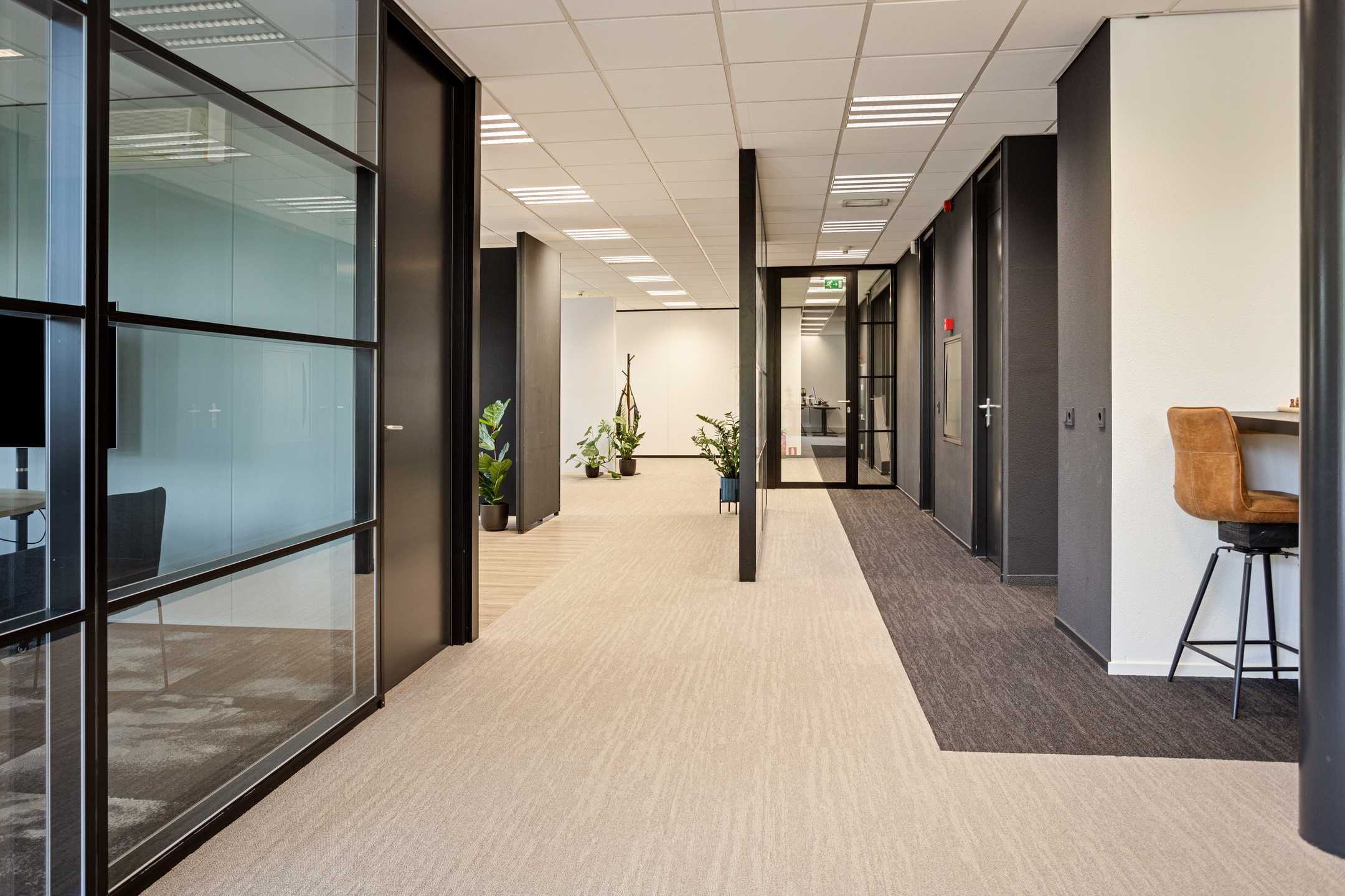 De kantoorruimtes worden in de huidige, instapklare staat opgeleverd, voorzien van onder andere: