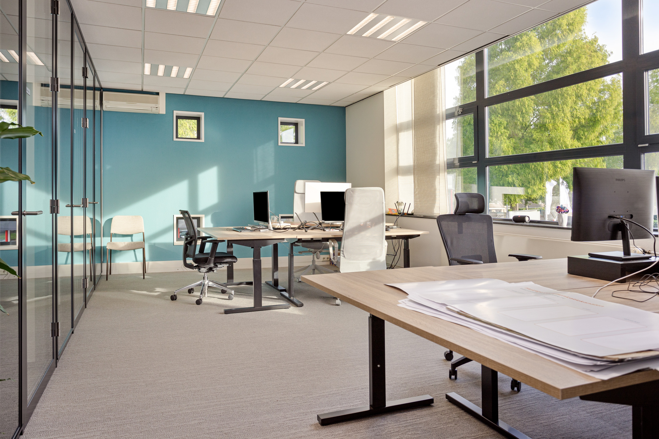 - scheidingswanden (dichte wanden en glaswanden);