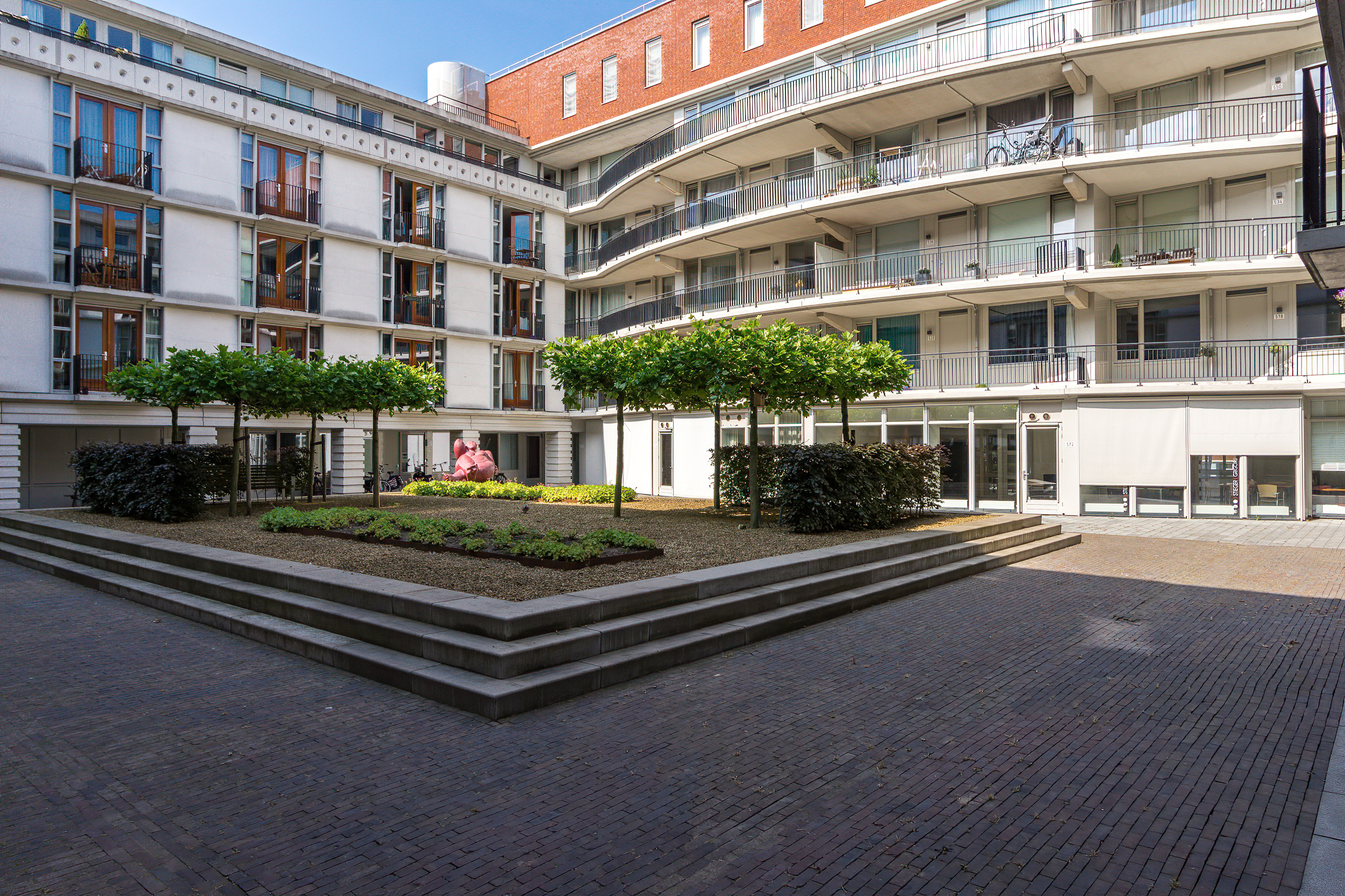 In de ondergelegen parkeerkelder is één parkeerplaats voor verhuur beschikbaar.