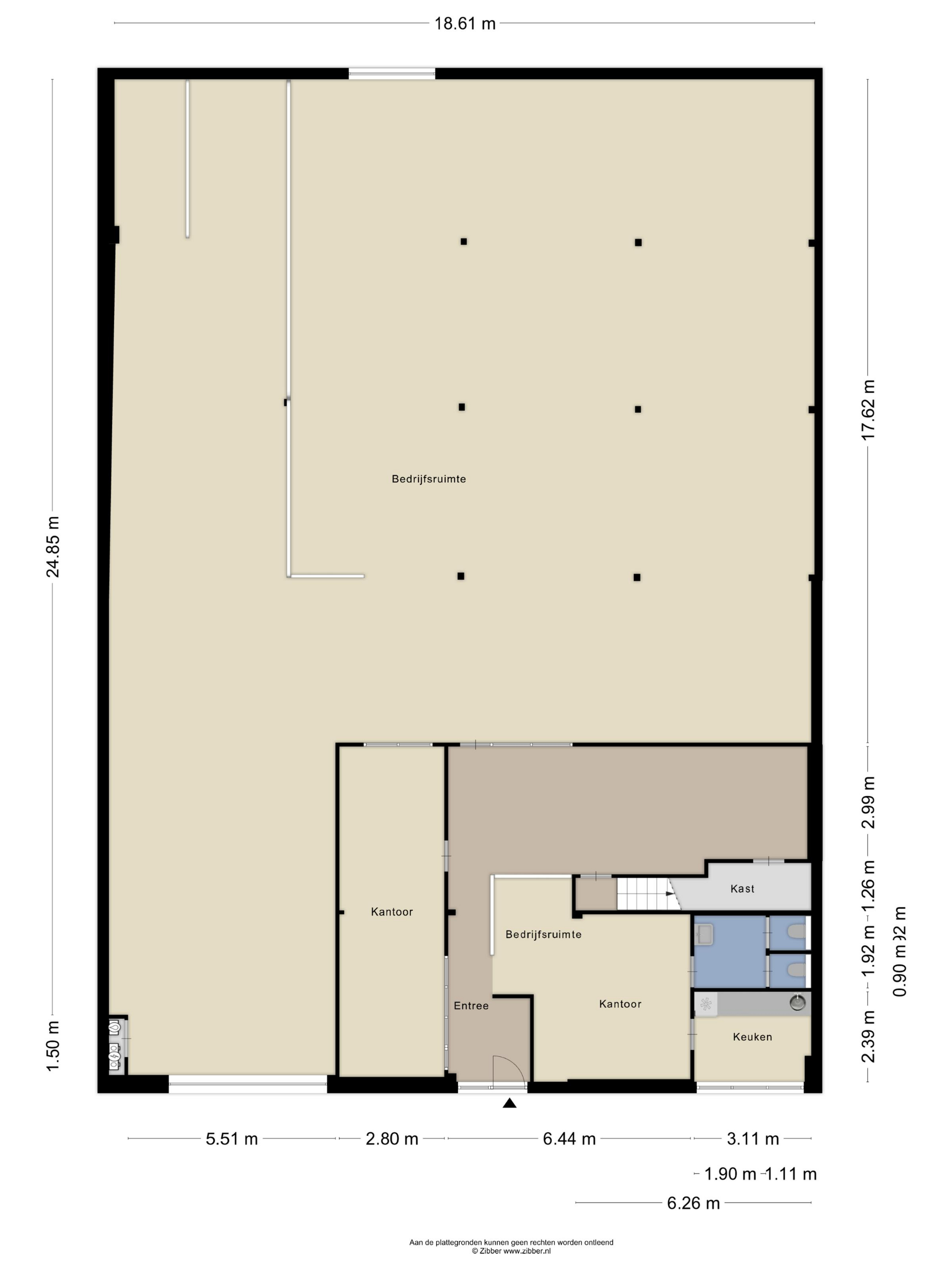 Het object omvat een nette bedrijfsruimte (391 m²) die is voorzien van een (houten) verdiepingsvloer (311 m²) met daarvoor een kantoor/showroom (circa 163 m²) verdeeld over twee bouwlagen.