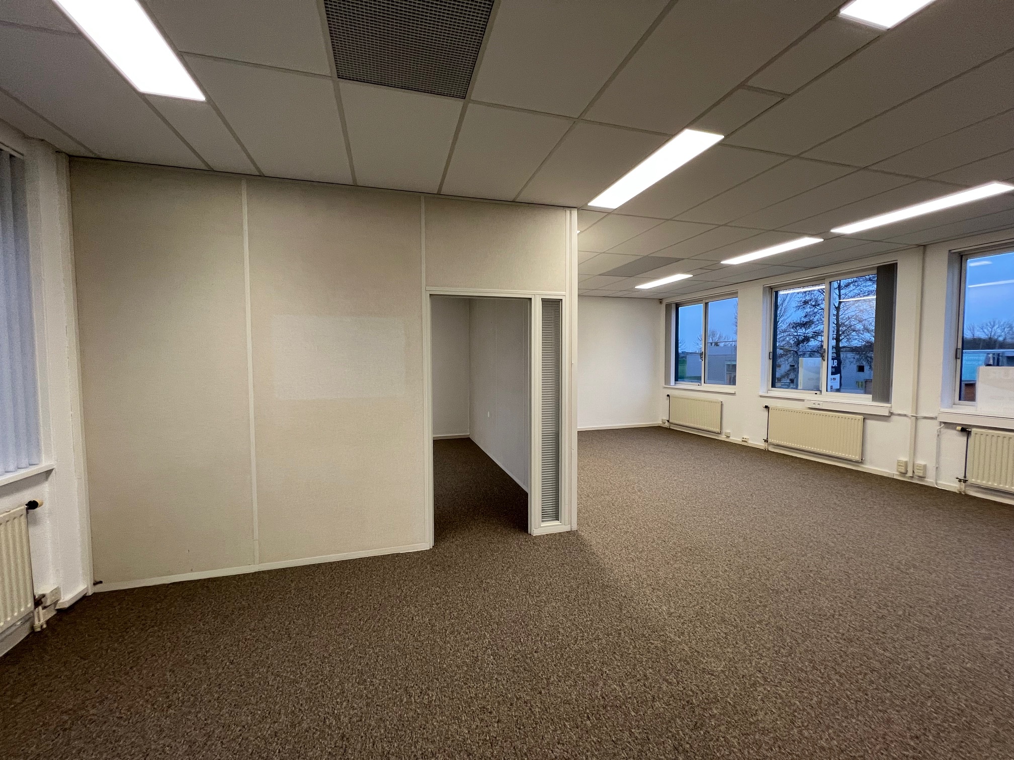 De kantoorruimte ligt op de eerste verdieping van een kleinschalig kantoorverzamelgebouw en is middels een gezamenlijke entree op de begane grond bereikbaar. De gehele eerste verdieping wordt te huur aangeboden en de totale verhuurbare oppervlakte bedraagt circa 160 m². Doordat aan beide zijden is voorzien in een pantry, is deelverhuur vanaf 80 m² eveneens mogelijk. De toiletten bevinden zich in de algemene entreehal.