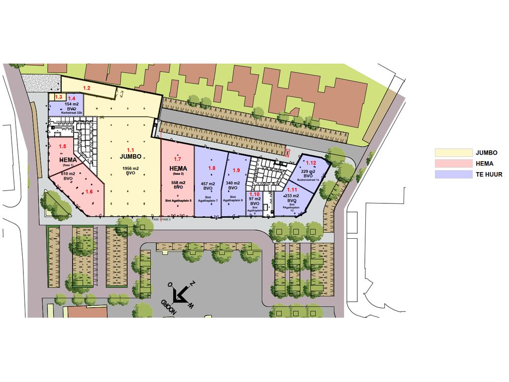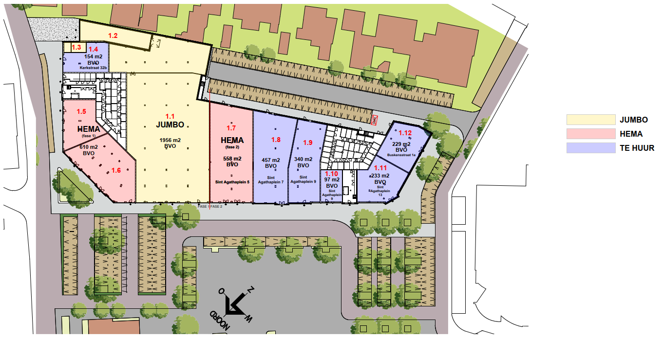 Fase 1 is inmiddels gerealiseerd en er is inmiddels een aanvang genomen met fase 2. Hema verhuist later naar haar definitieve winkel in Fase 2. Voor de beschikbare winkelruimten verwijzen wij u graag naar de plattegrondtekening.