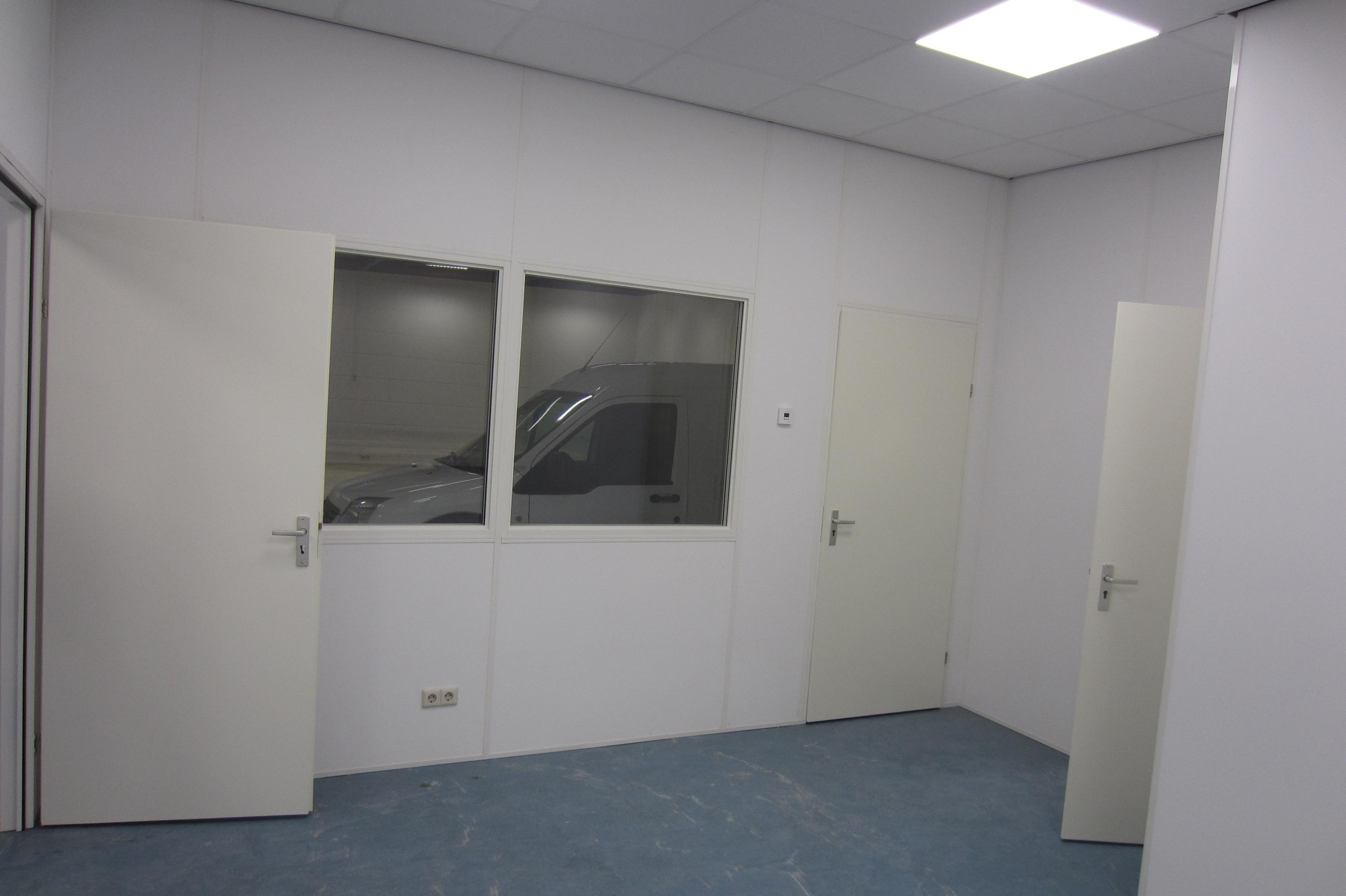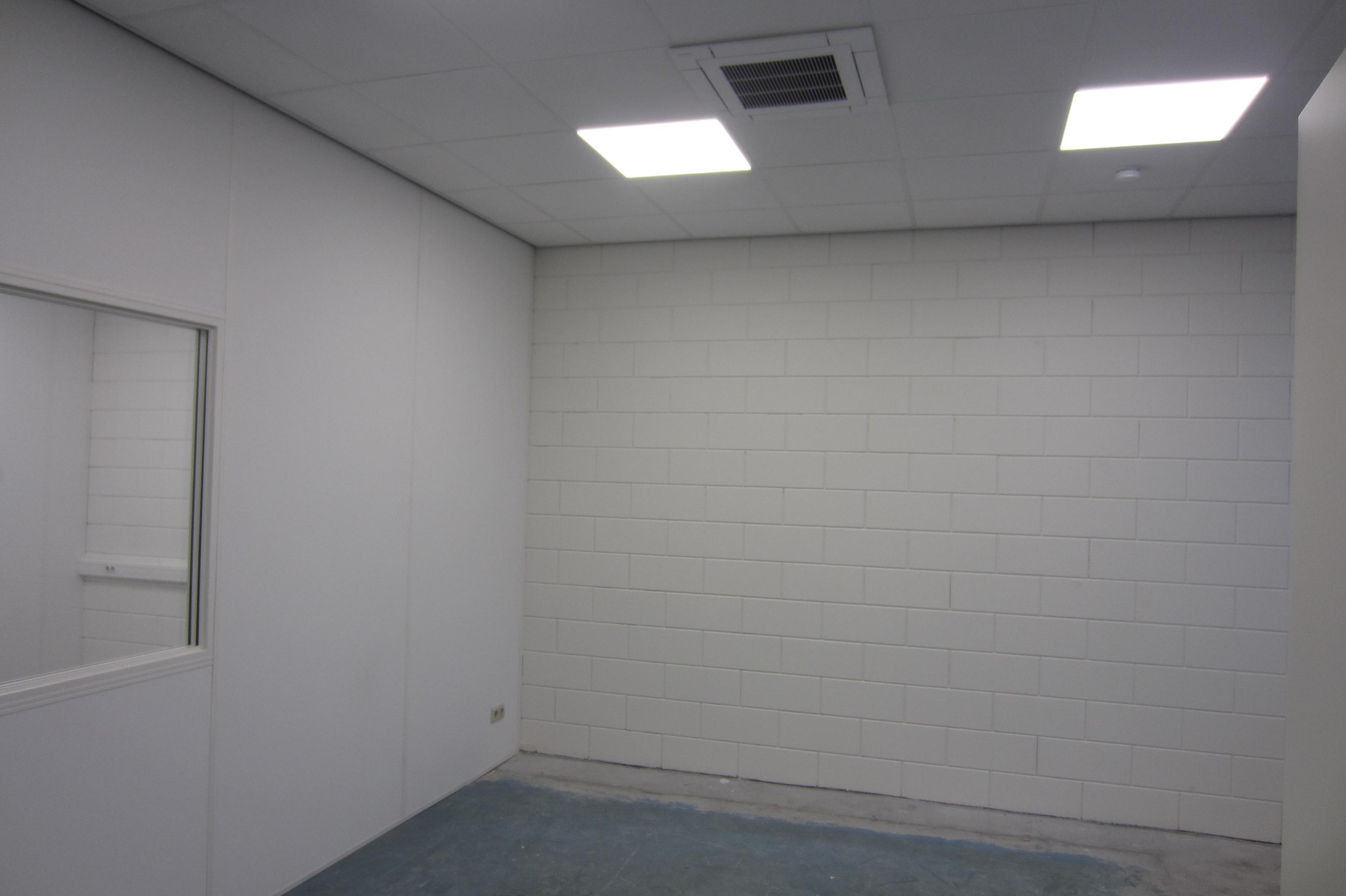 De ingebouwde kantoorruimte/spreekkamer/kantine is voorzien van systeemplafond met ledverlichting, toiletruimte met voorportaal en fonteintje, pantry voorzien van een close-in-boiler, verwarming en koeling middels inbouw airco-unit in het systeemplafond van het kantoor, verwarming middels infrarood paneel in het systeemplafond van de kantine en spreekkamer en tot slot noodverlichting en mechanische ventilatie.